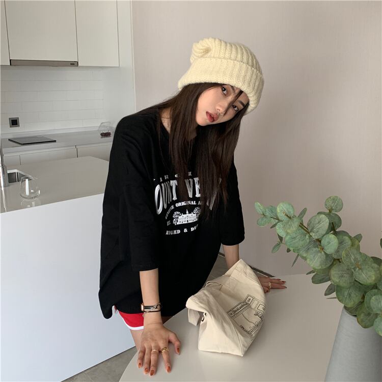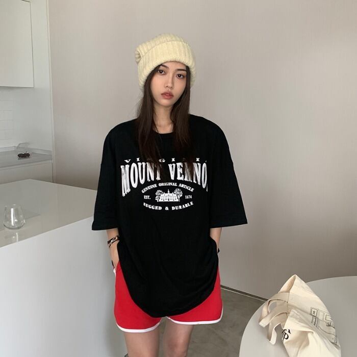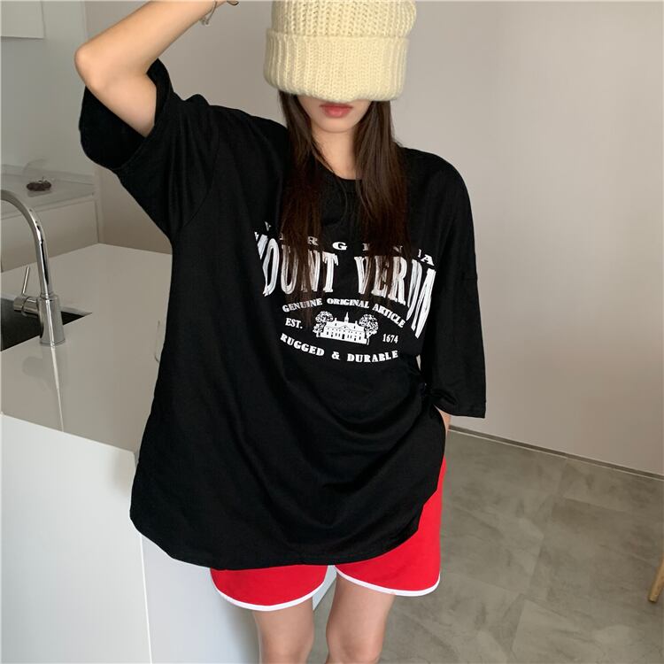 ブラックプリントTシャツ サマールーズ 夏物 モンロー91063475625