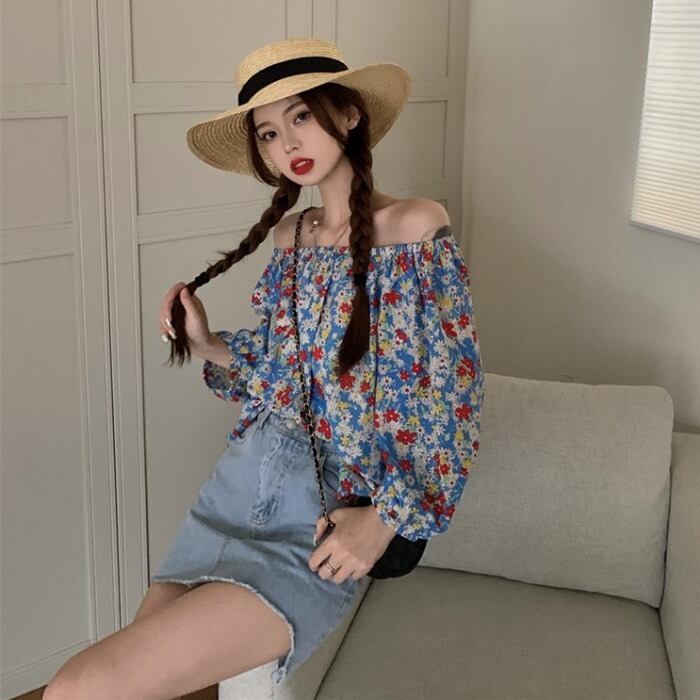 カラーフローラルシャツ レディーススタンダードショートトップス サマー薄手 ロング レトロ 大人ガーリー スウィート キュート カジュアル 夏物 花柄 モンロー44439372756