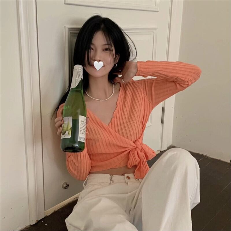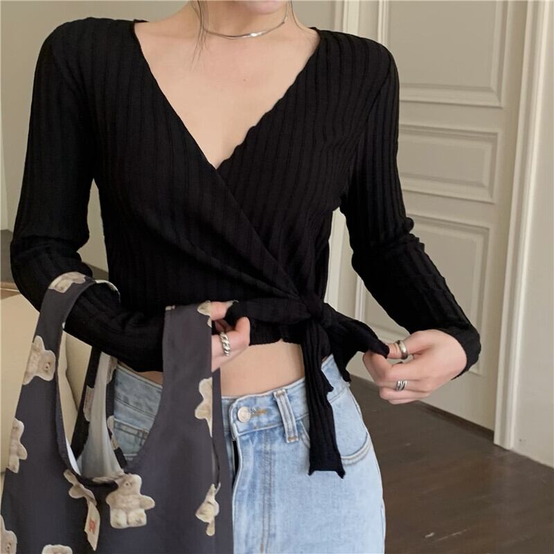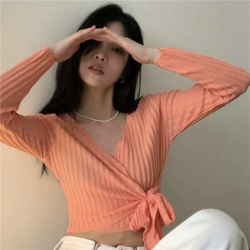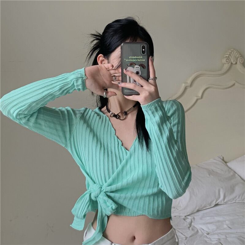 Vネックセーター 薄手スプリングサマーショートクロップトップ トップス ロング 大人ガーリー スウィート キュート カジュアル 春物 夏物 モンロー98124554584