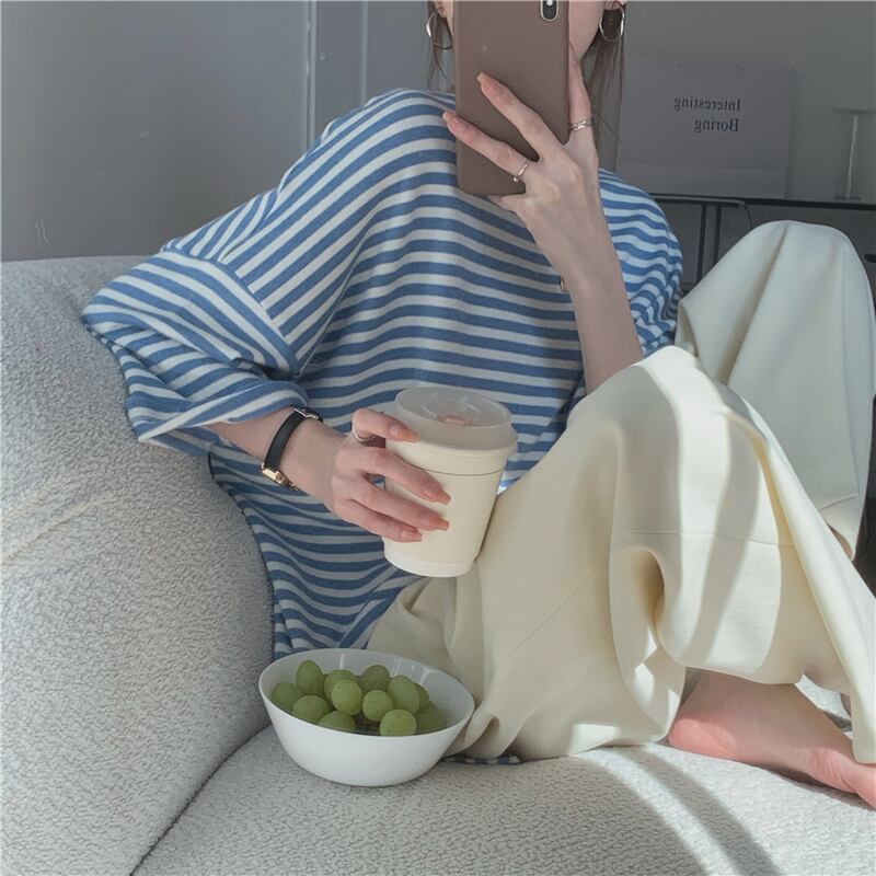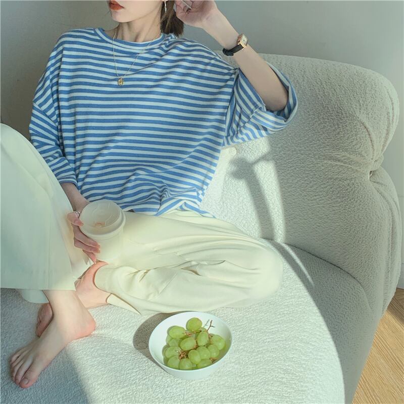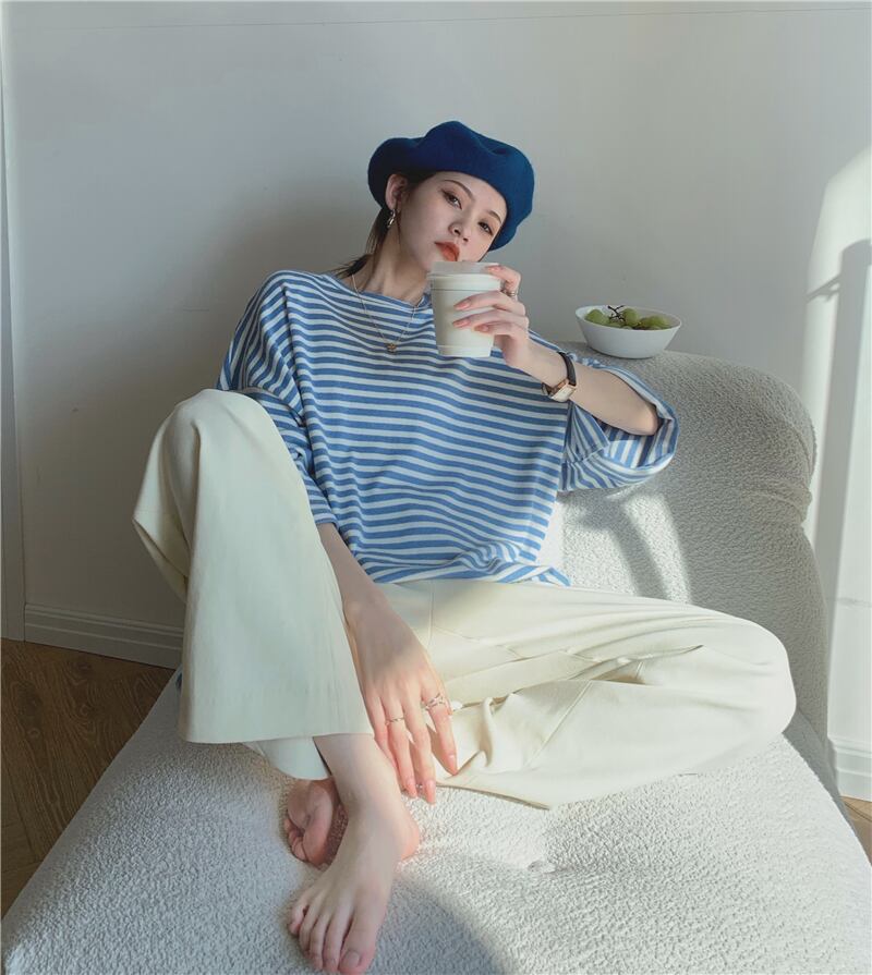 ルーズブルーストライプスプリングシャツ Tシャツ トップス 春物 モンロー83198771753