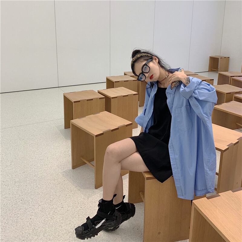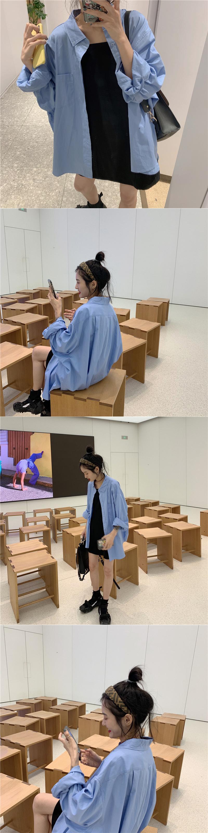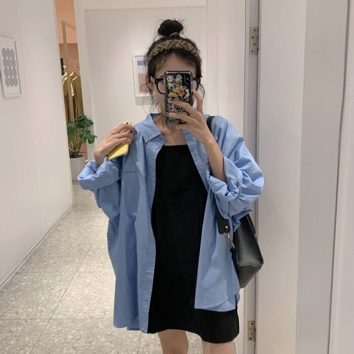 ブルーシャツ スプリングルーズ薄手ジャケット トップス ロング 春物 モンロー62641677599