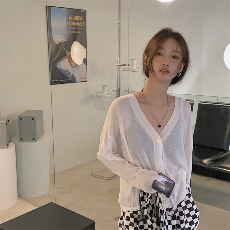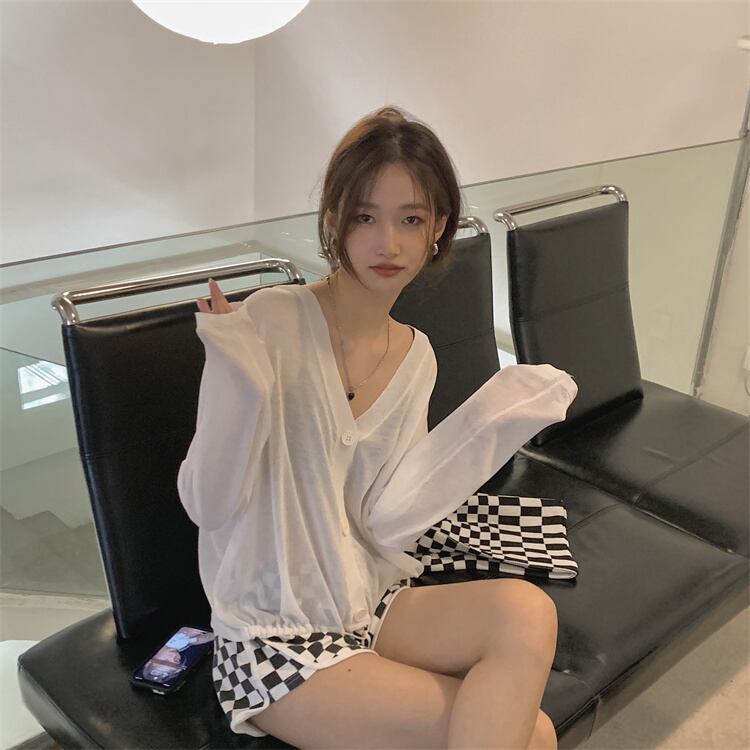 ルーズ薄手Vネックニットカーディガンサマーカジュアルジャケット ロング 夏物 モンロー47788756039