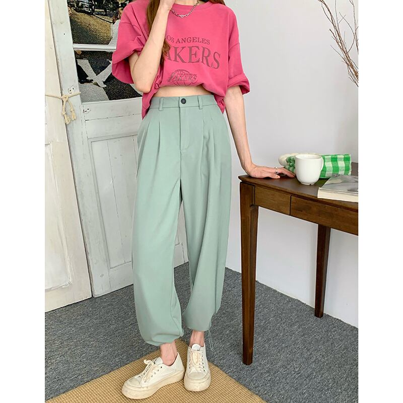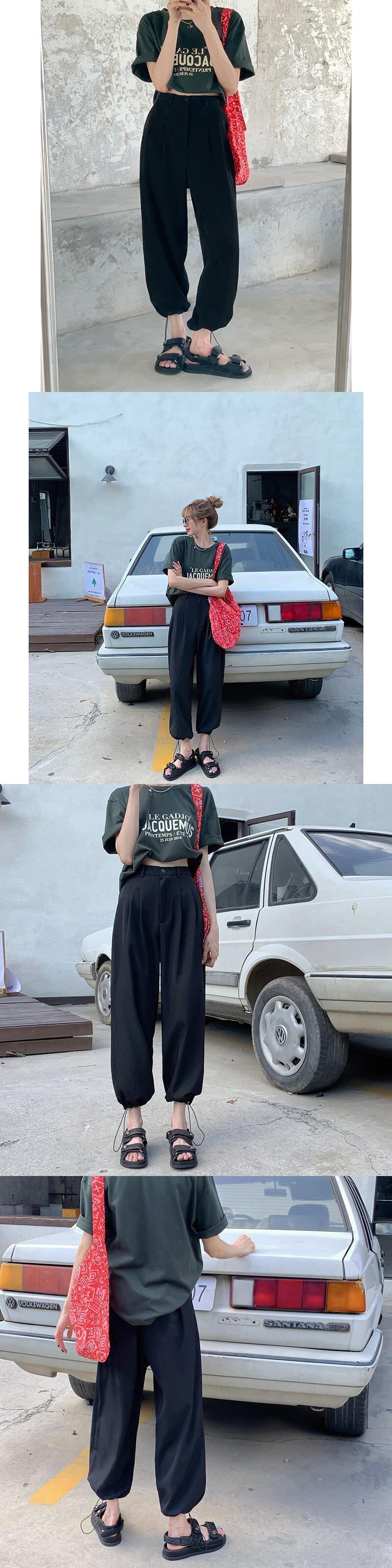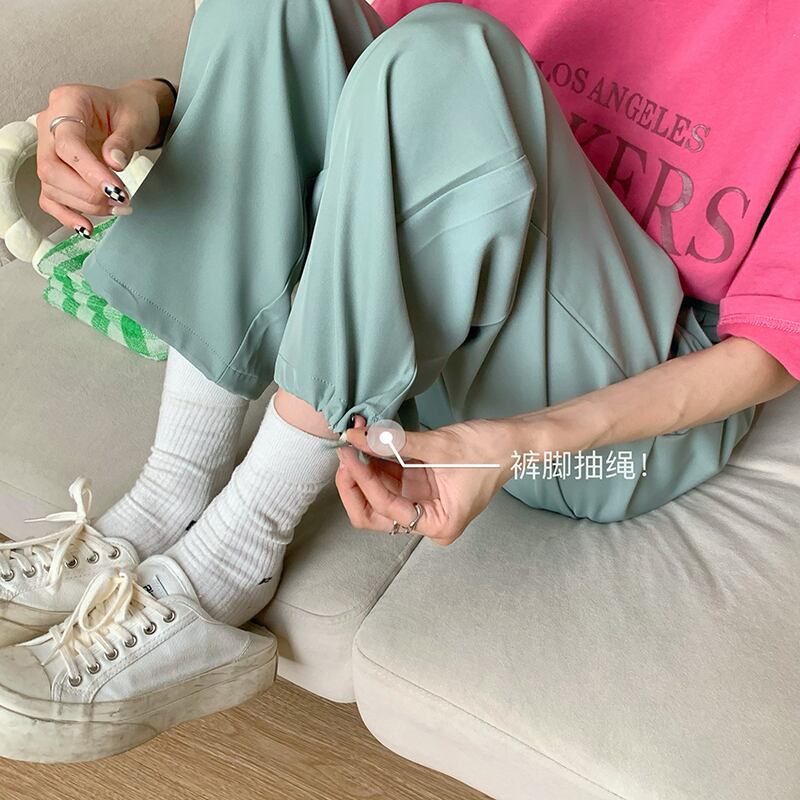 ブラックカジュアルパンツ サマーハイウェストウェスト薄手ルーズ 夏物 モンロー5225920239