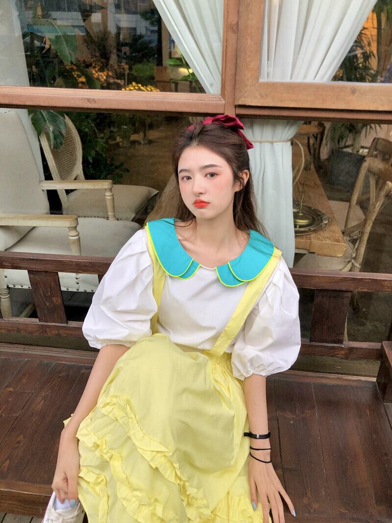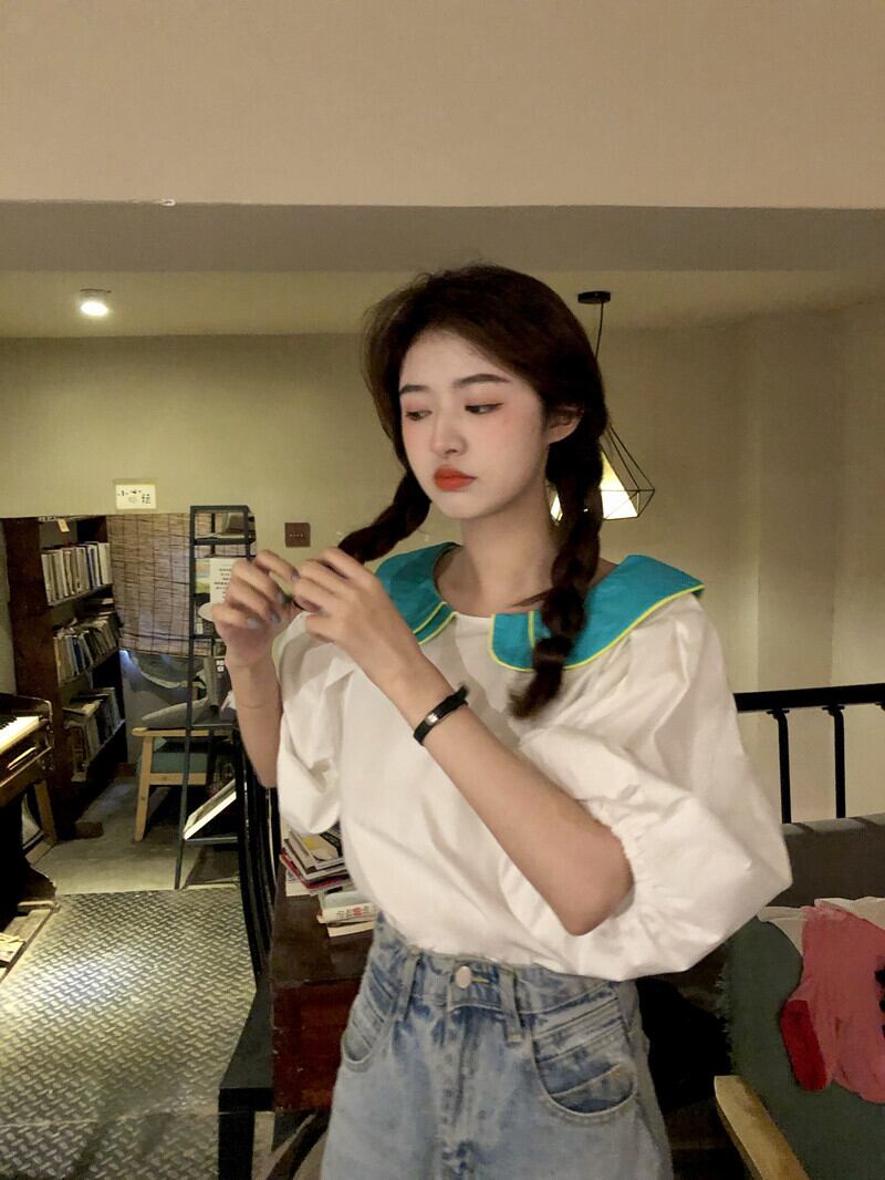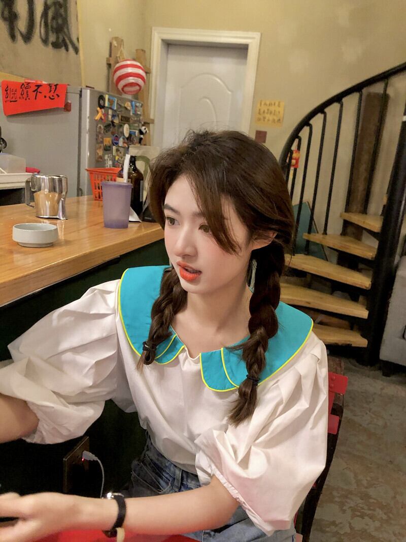 カラーブラウス ホワイトシャツ サマースリーブスタイル 大人ガーリー スウィート キュート カジュアル 夏物 モンロー3352644167