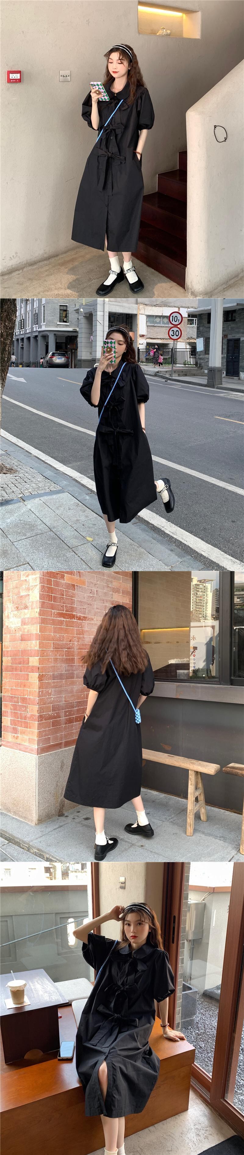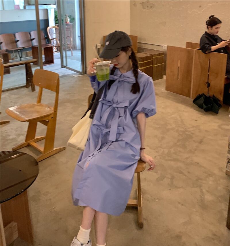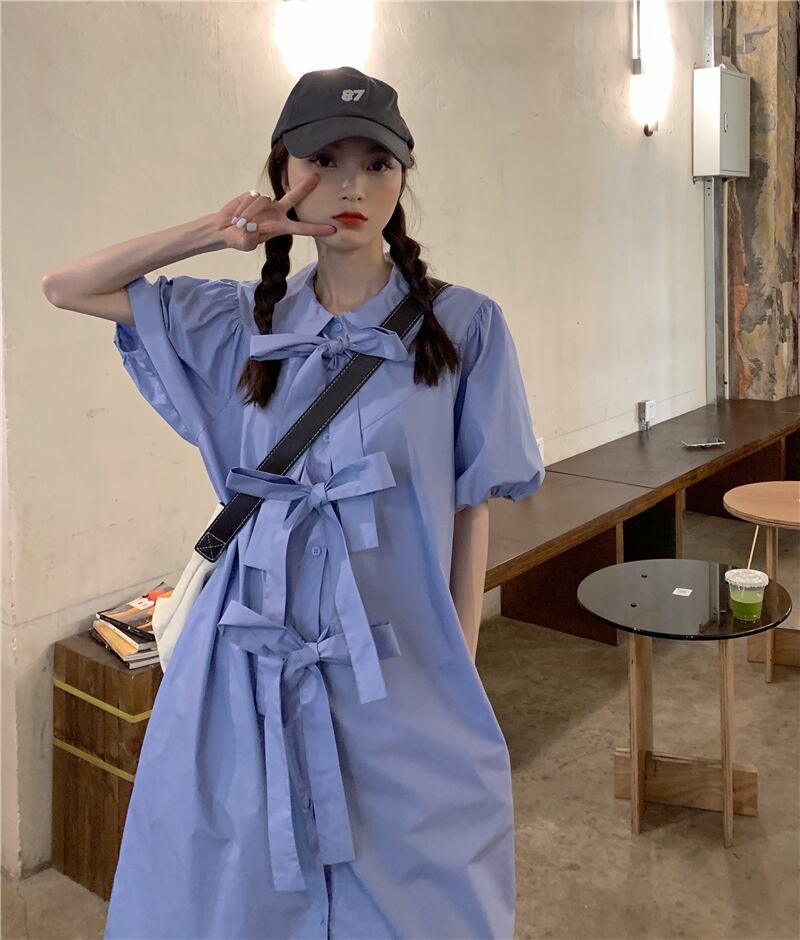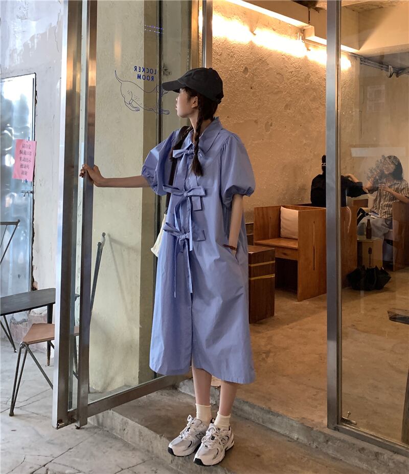 サマードレス ルーズ薄手シャツ スカート リボン レース 夏物 レースアップ モンロー1511868696
