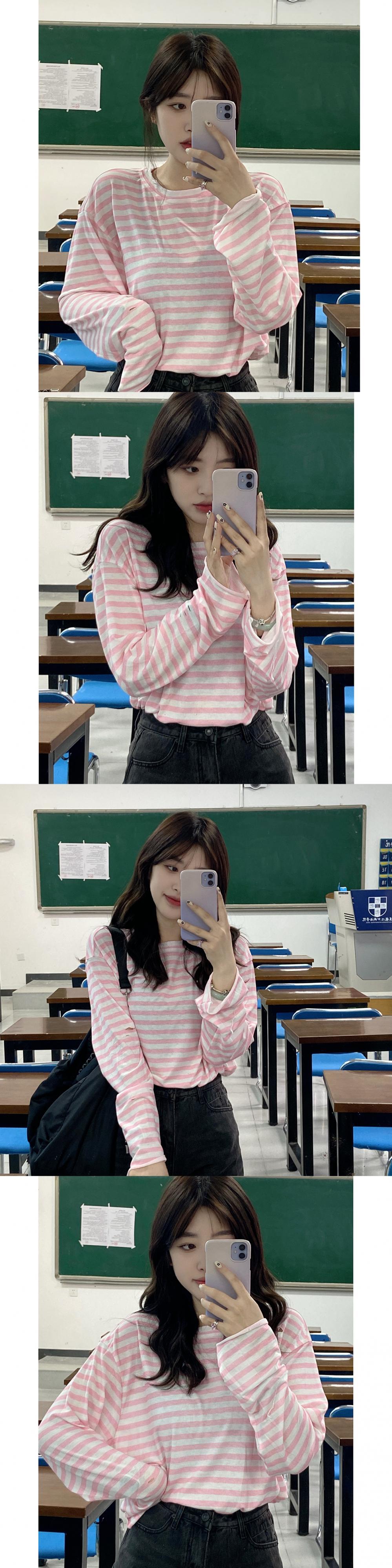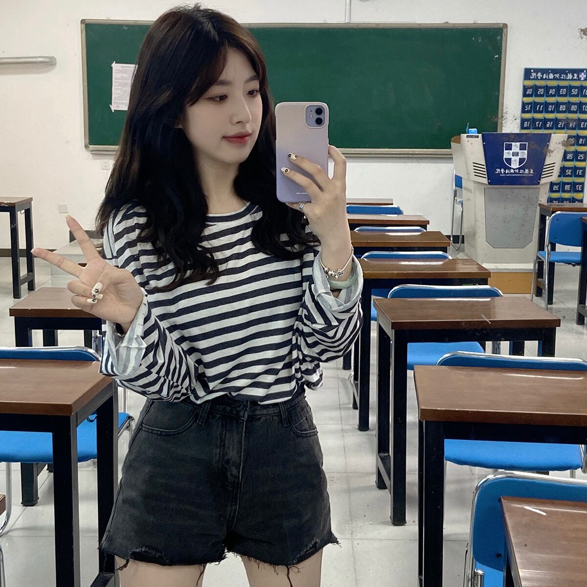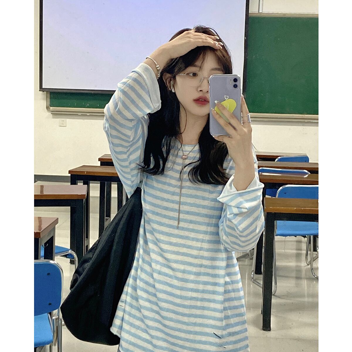 スタイルルーズストライプトップス サマースタンダードTシャツ ロング レトロ かわいい 夏物 モンロー85061233423