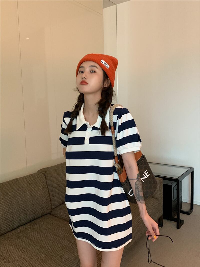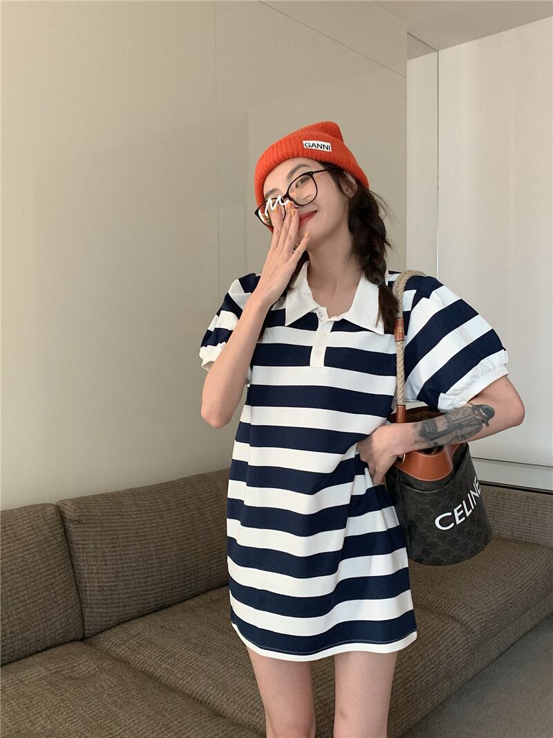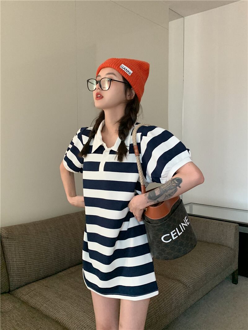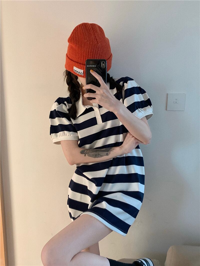ショートTシャツ ストライプドレス サマースタイルカジュアルカラースカート 大人ガーリー スウィート キュート 夏物 モンロー56058576020