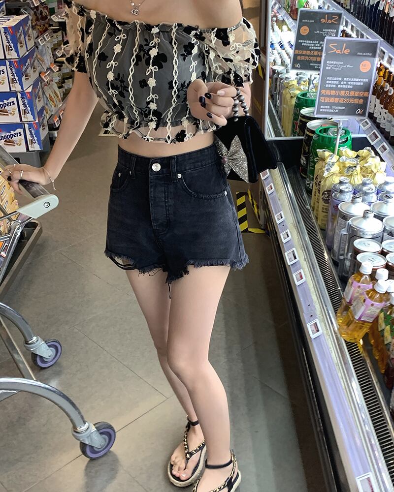 色:ホワイトデニムショートパンツ9509,ブラックデニムショートパンツ9509,ストライプトップ28051,刺繡トップ11586