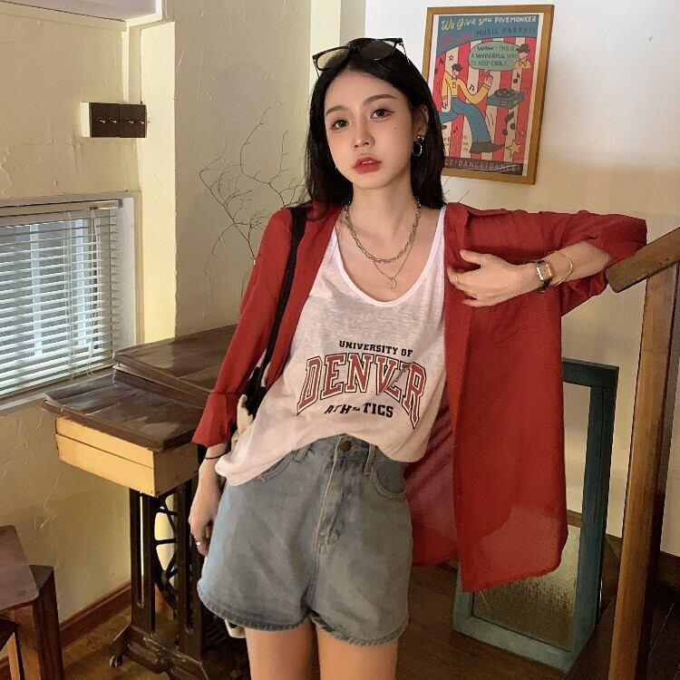 色:ホワイトベスト3933#,カーキベスト3933#,赤いシャツ3932#,カーキシャツ3932#