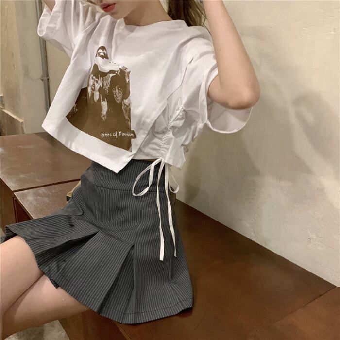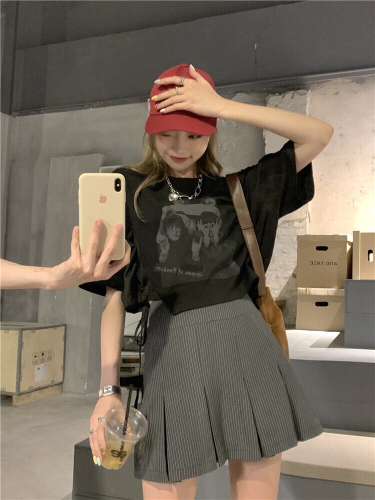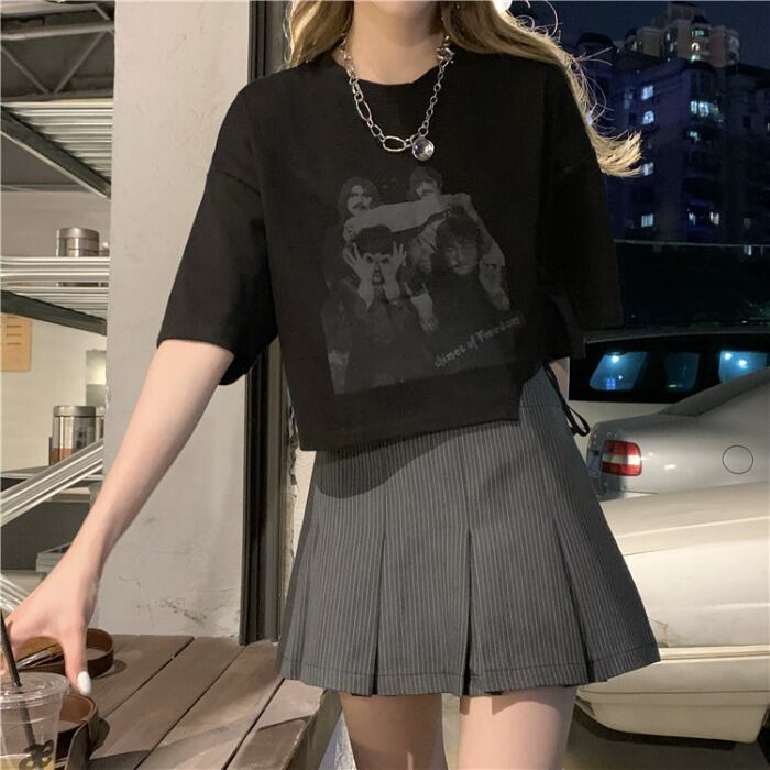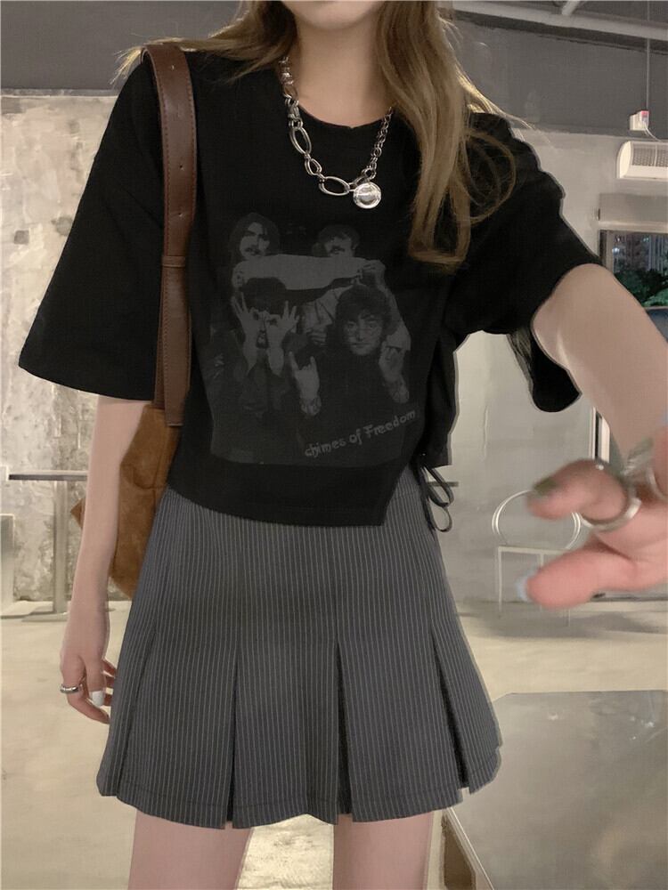 ブラックショートTシャツ サマークロップドトップス 夏物 モンロー34391409288