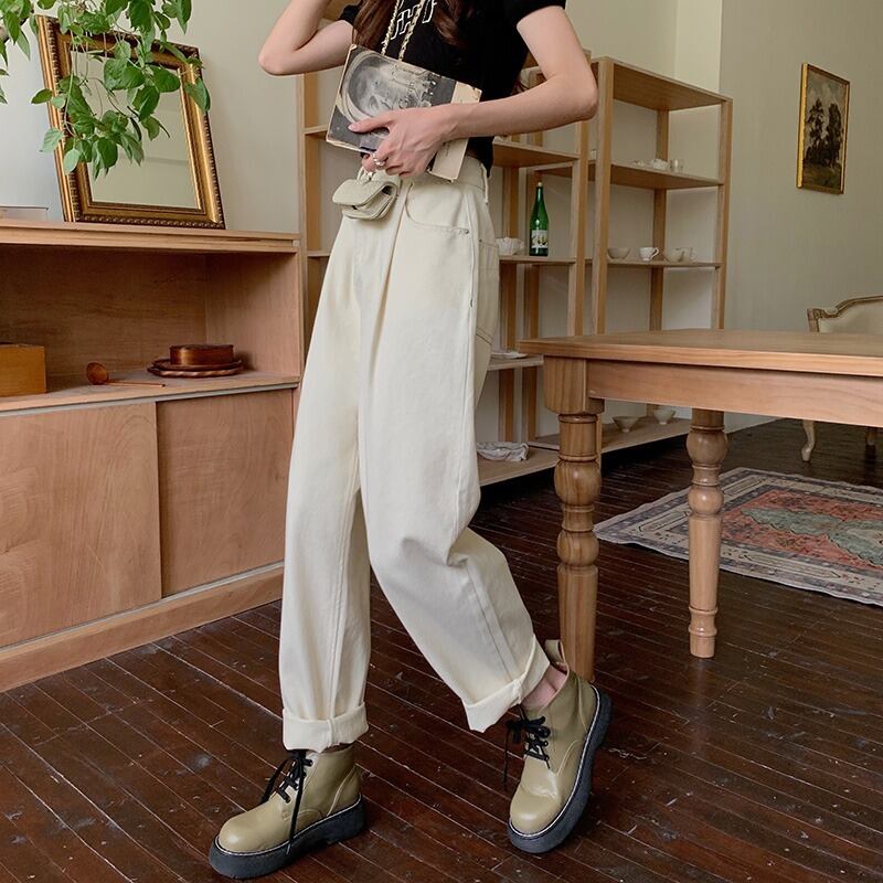 ホワイトハイウェストウェストスリムジーンズ サマールーズパンツ 夏物 モンロー10136942130