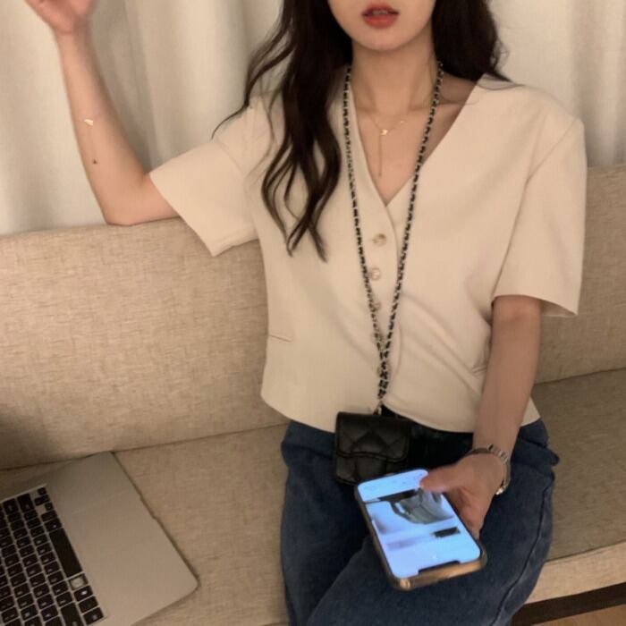 レッドカジュアルVネックショート薄手ジャケット レディースサマー ストリート 夏物 モンロー56476204749