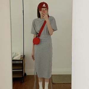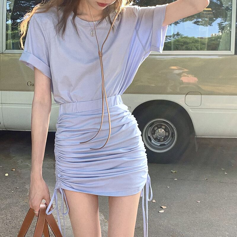 スタイルサマーラウンドネックTシャツ ギャザースカート 夏物 Oネック モンロー67065828681