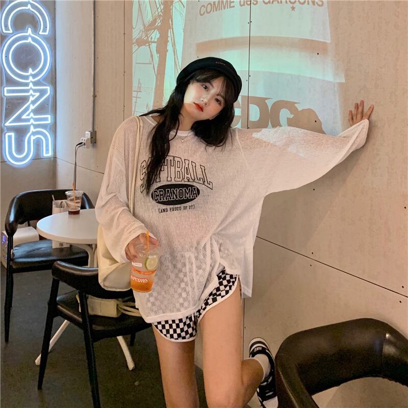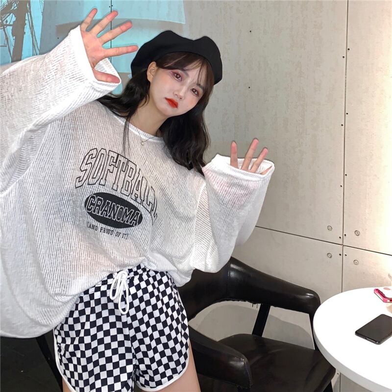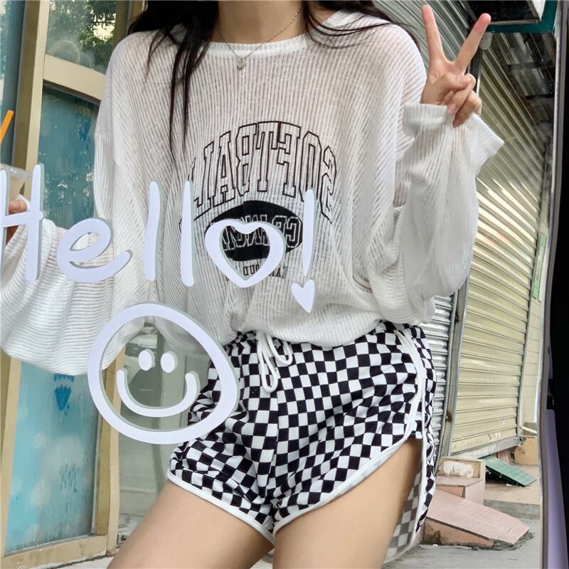 色:長袖トップ,黒と白のチェックショーツ