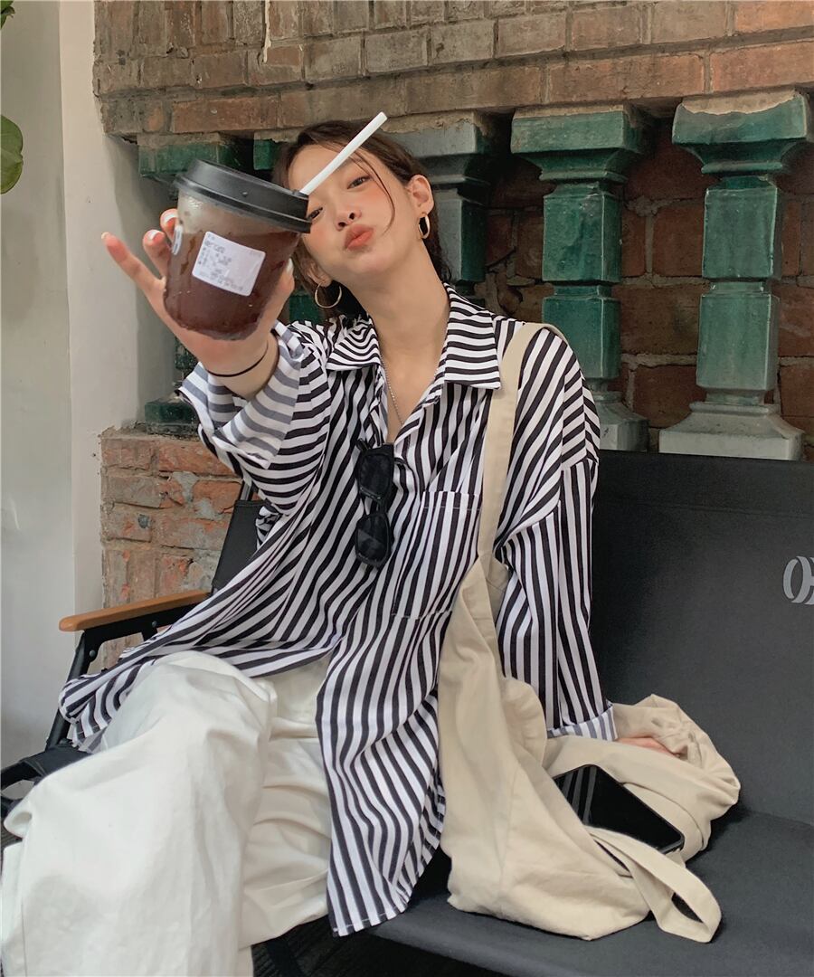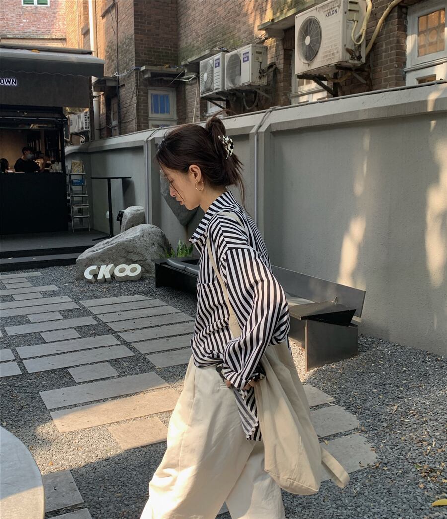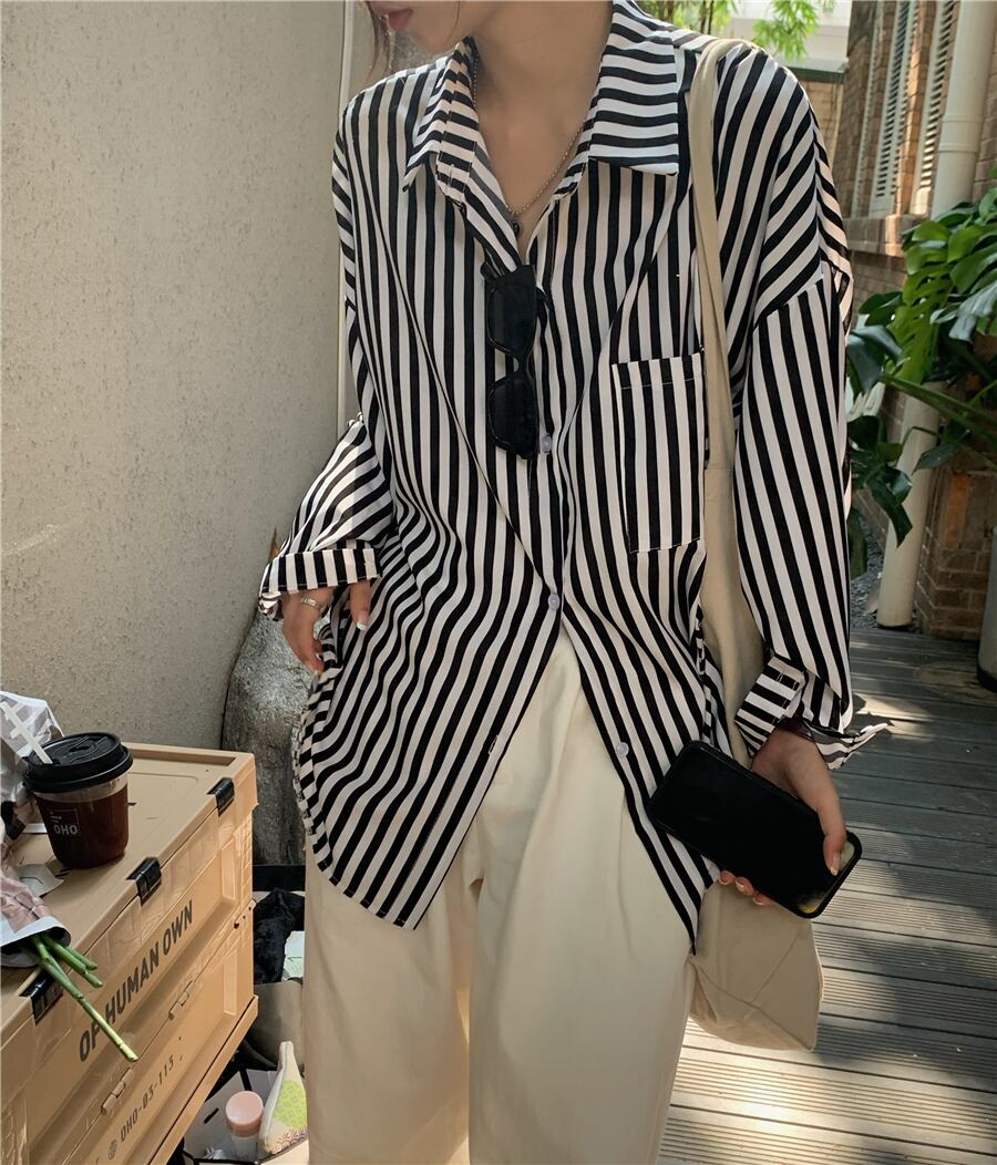サマーオータムルーズストライプシャツ ロング 夏物 秋物 モンロー84463967746
