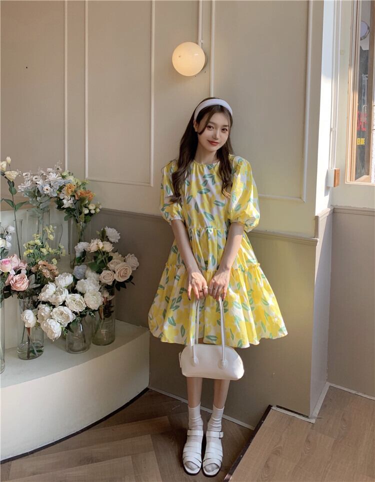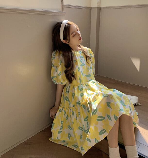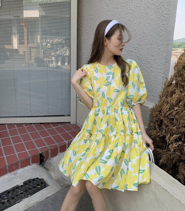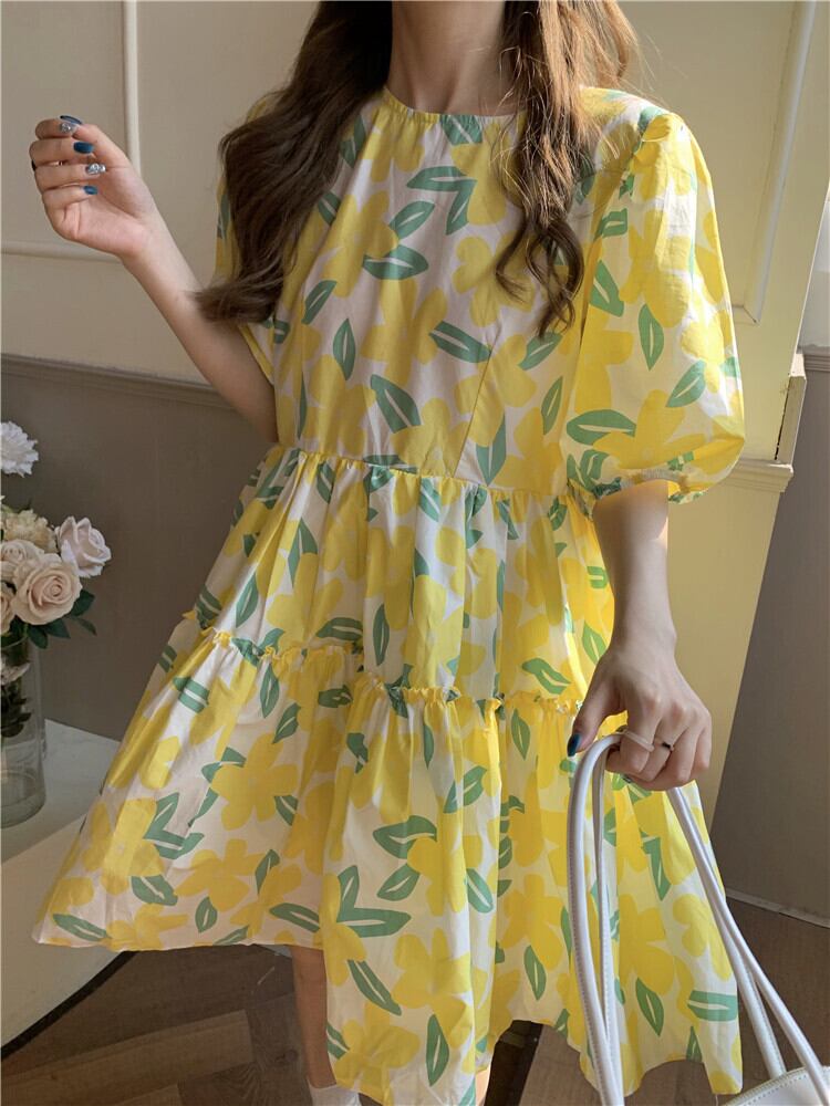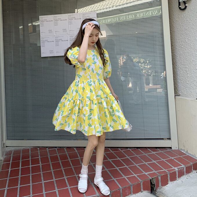 ウェストスリムドレス サマースタイルラウンドネックスカート 夏物 Oネック モンロー26845850673