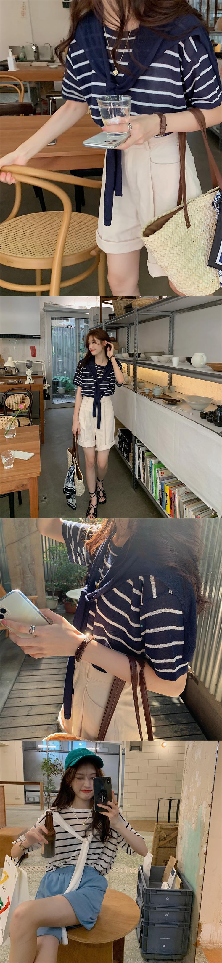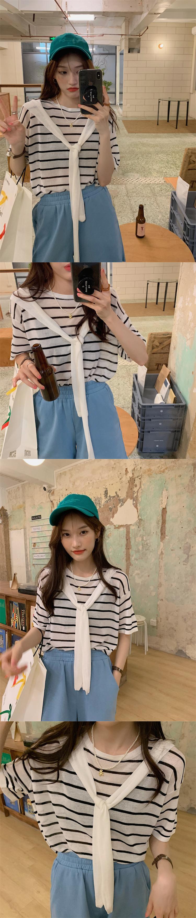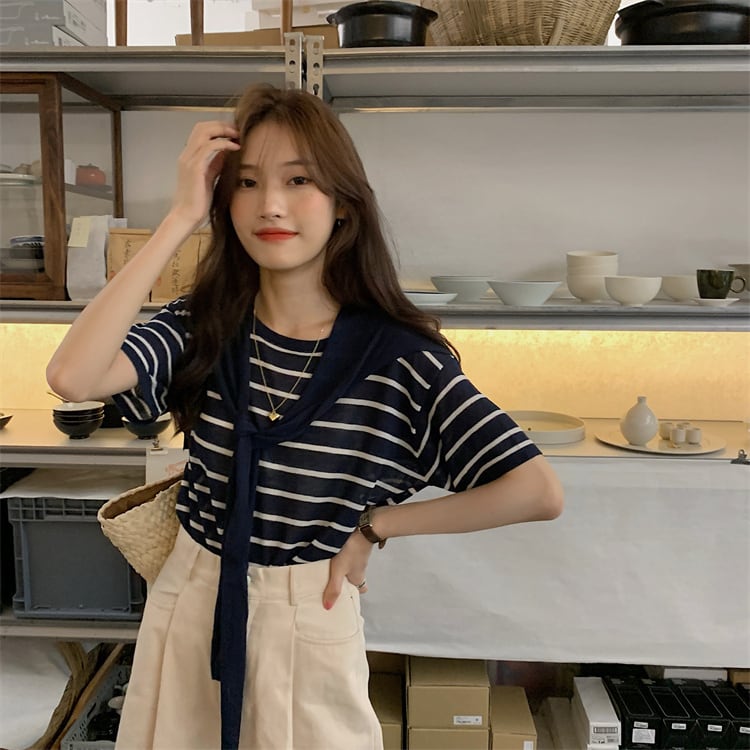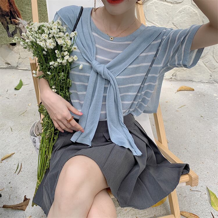 スタイルストライプセーター 薄手シャツ サマールーズトップス 夏物 モンロー16310107940