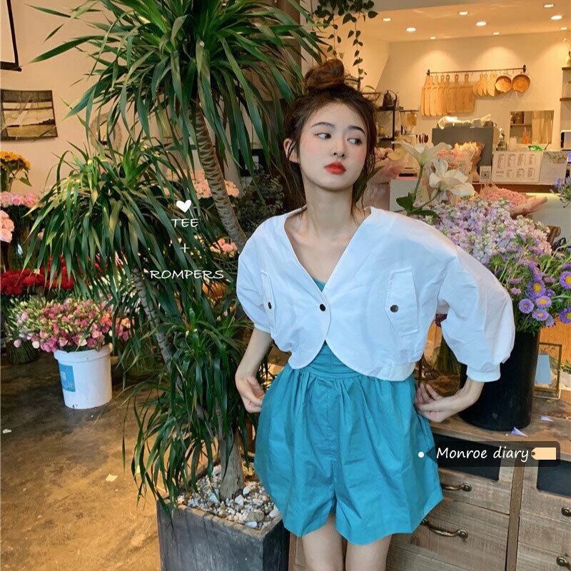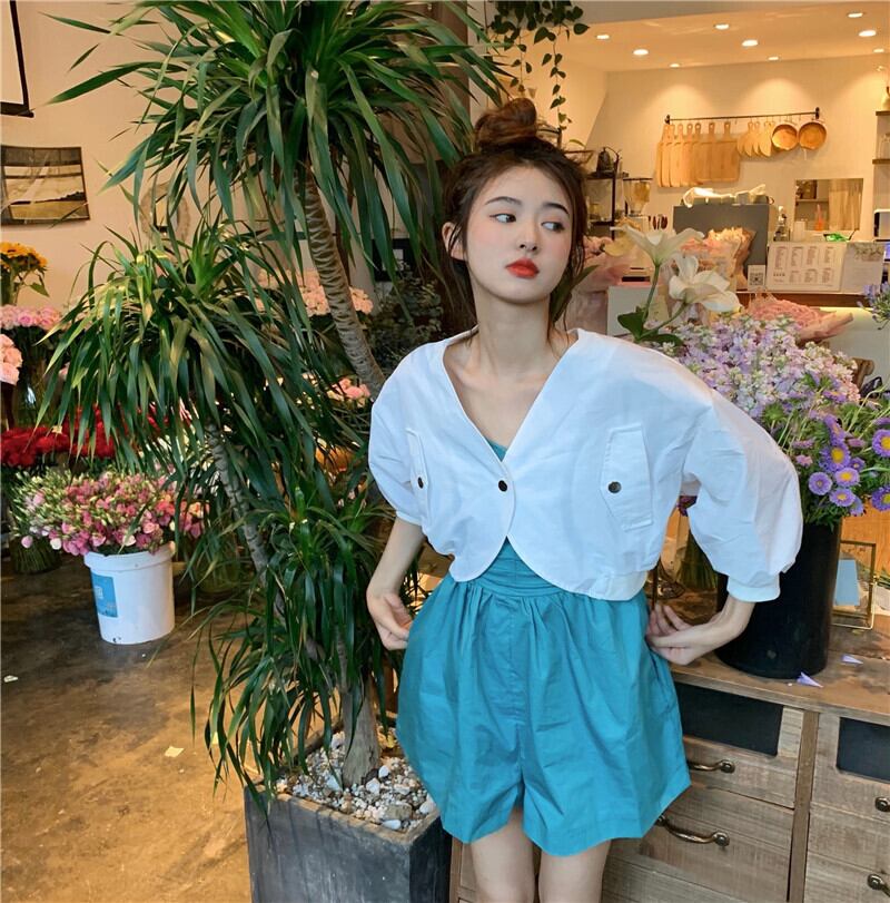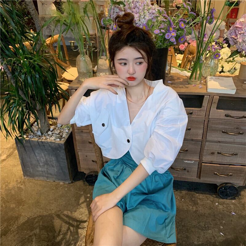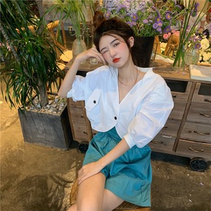 ホワイトシャツ ジャケット Vネックスリーブショートサマートップス 夏物 モンロー92671744343