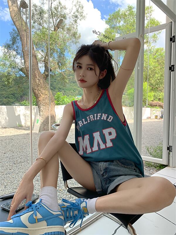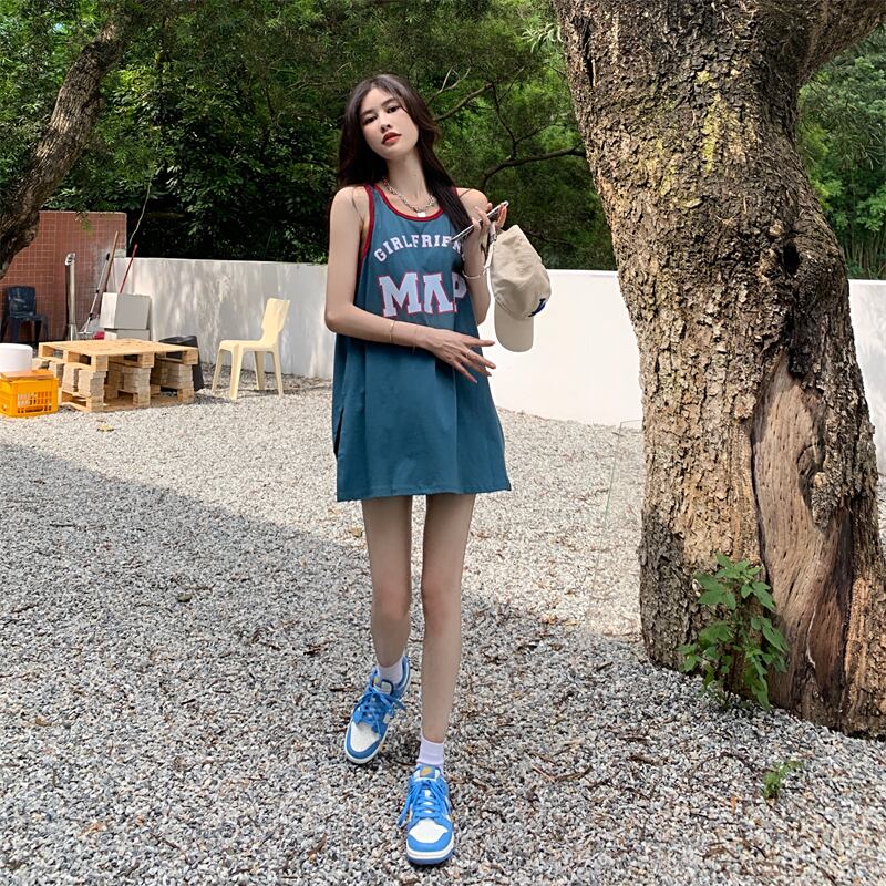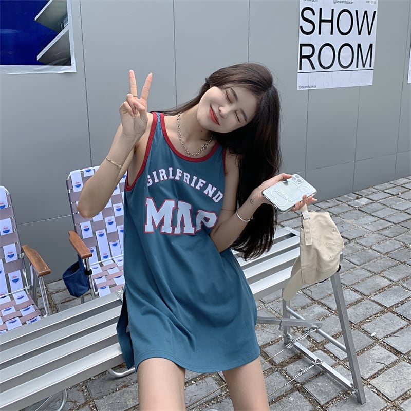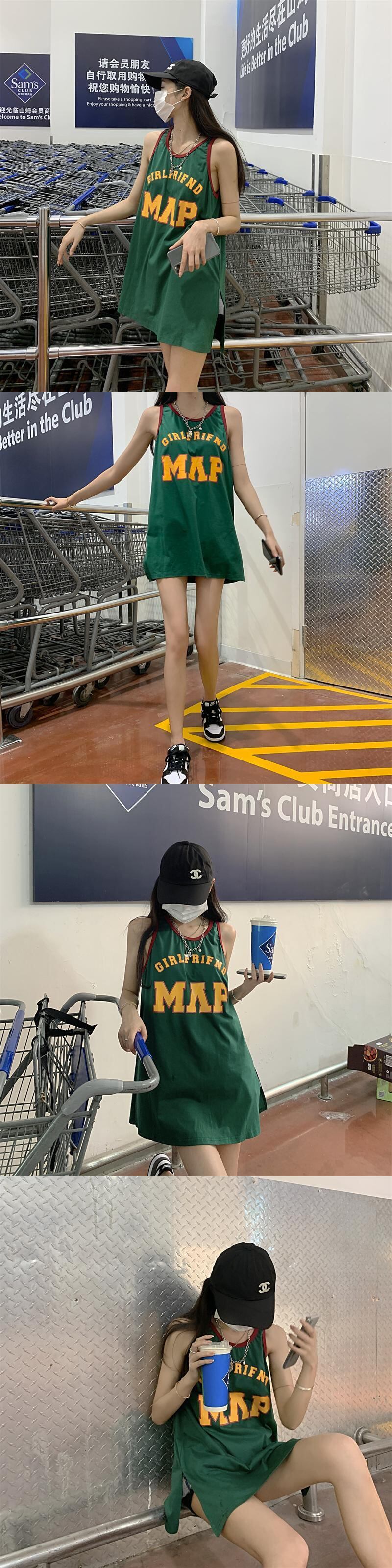 サマールーズカラーサイドスタンダードプリントノースリーブトップス レトロ 夏物 モンロー42624641056