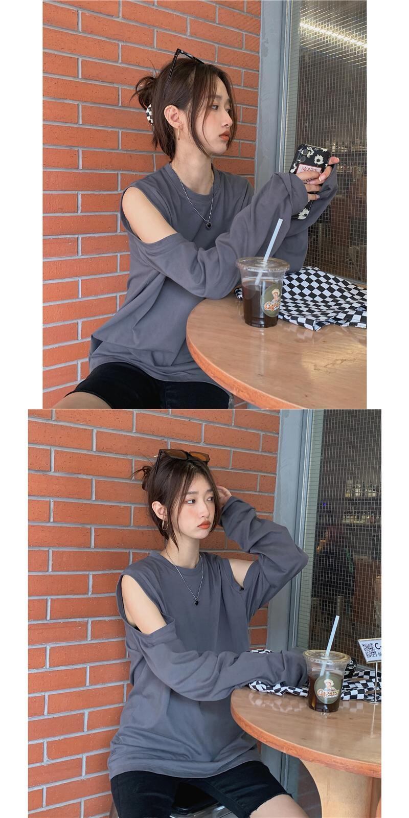 スタイルストラップレスルーズTシャツ シャツ スプリングオータム薄手サマー ロング 春物 夏物 秋物 モンロー24846025829