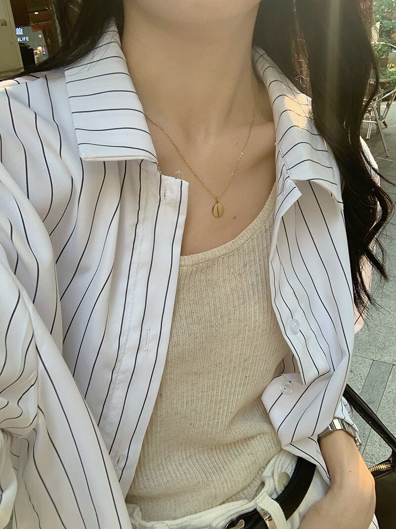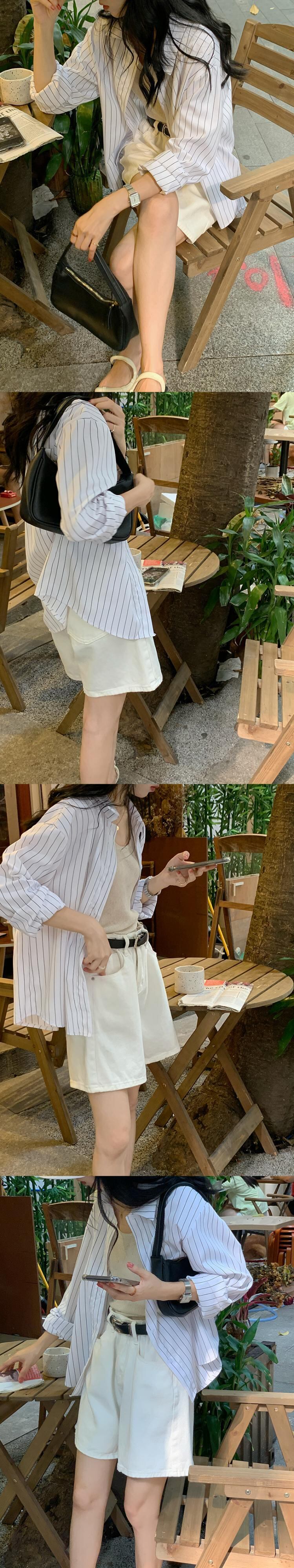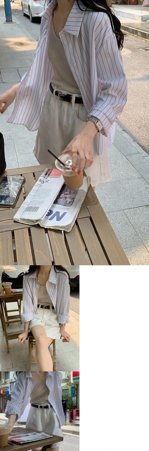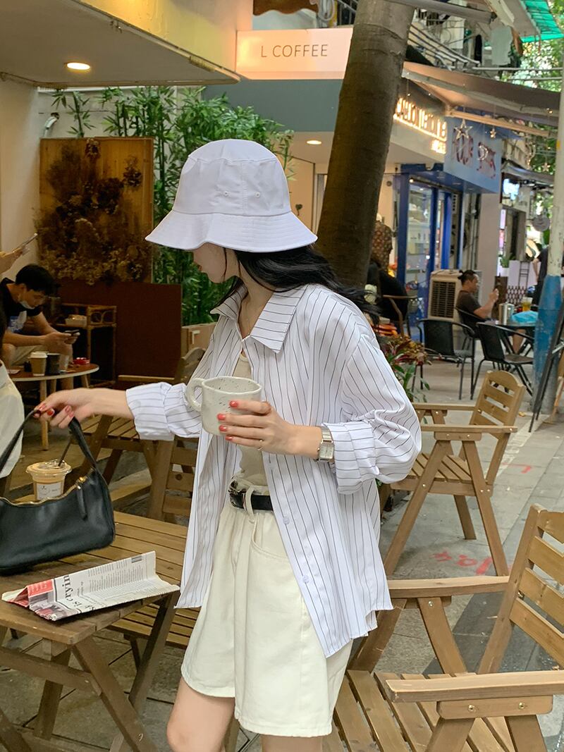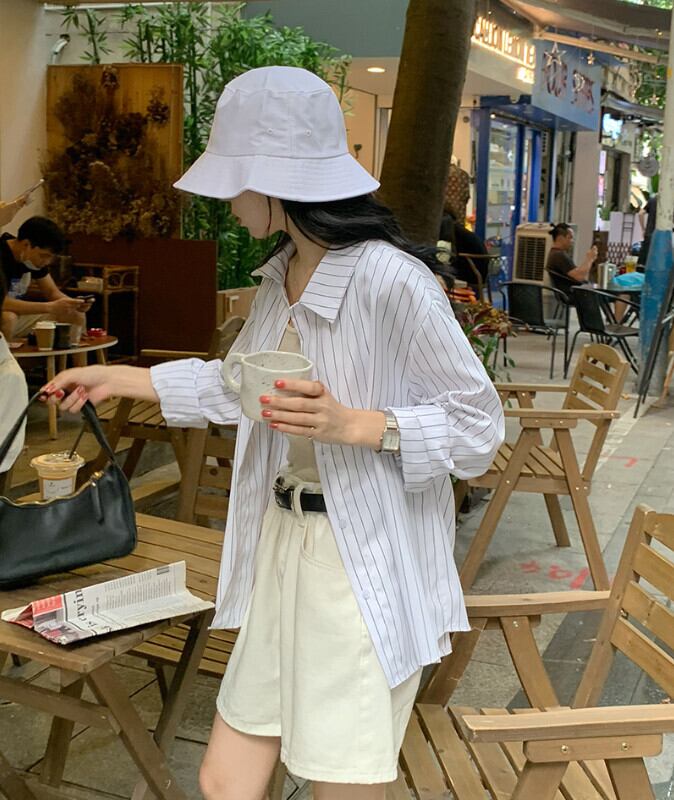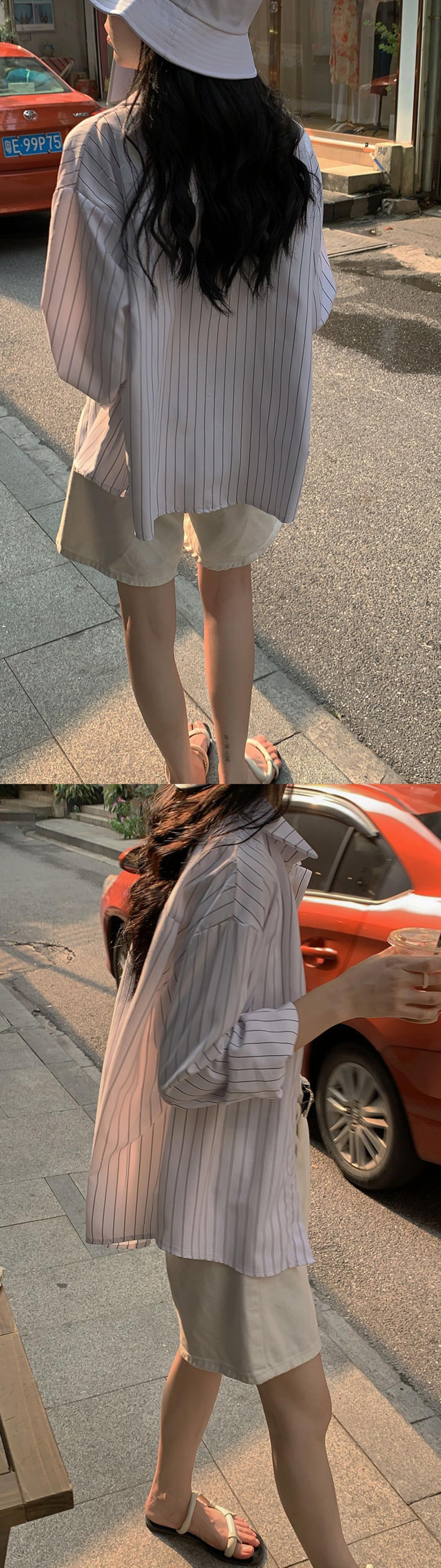 ルーズストライプシャツ トップス サマー ロング 夏物 モンロー16985679997