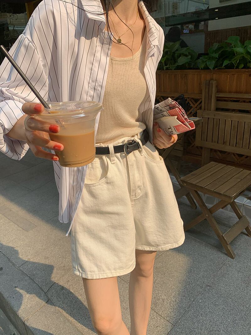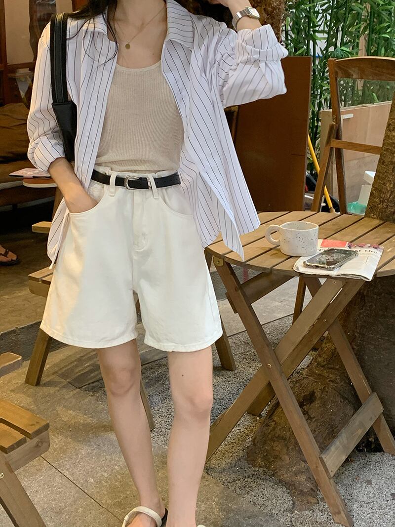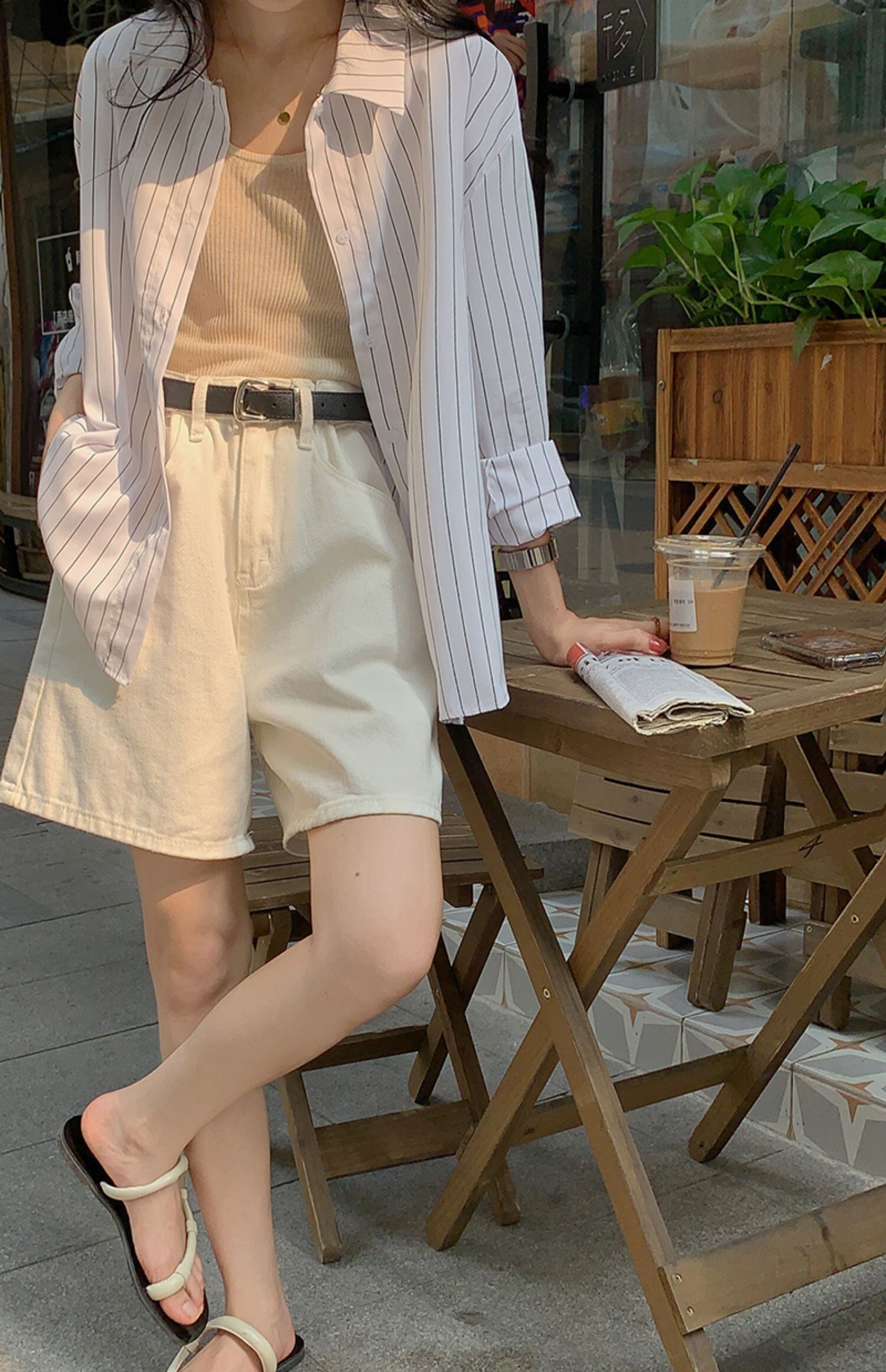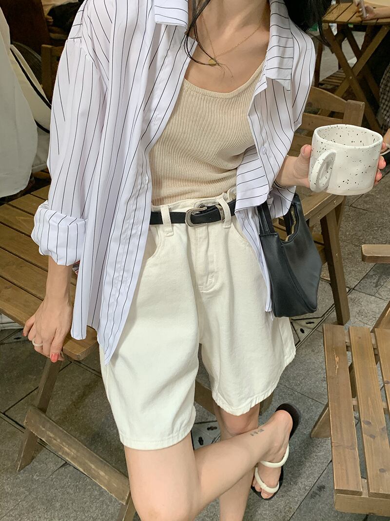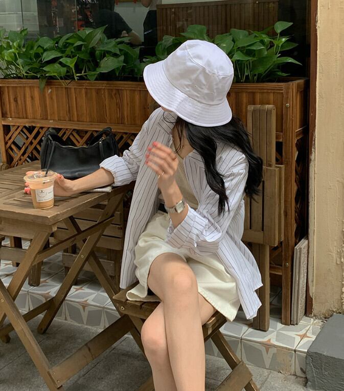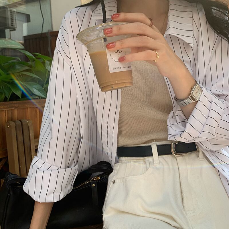 ルーズストライプシャツ トップス サマー ロング 夏物 モンロー16985679997