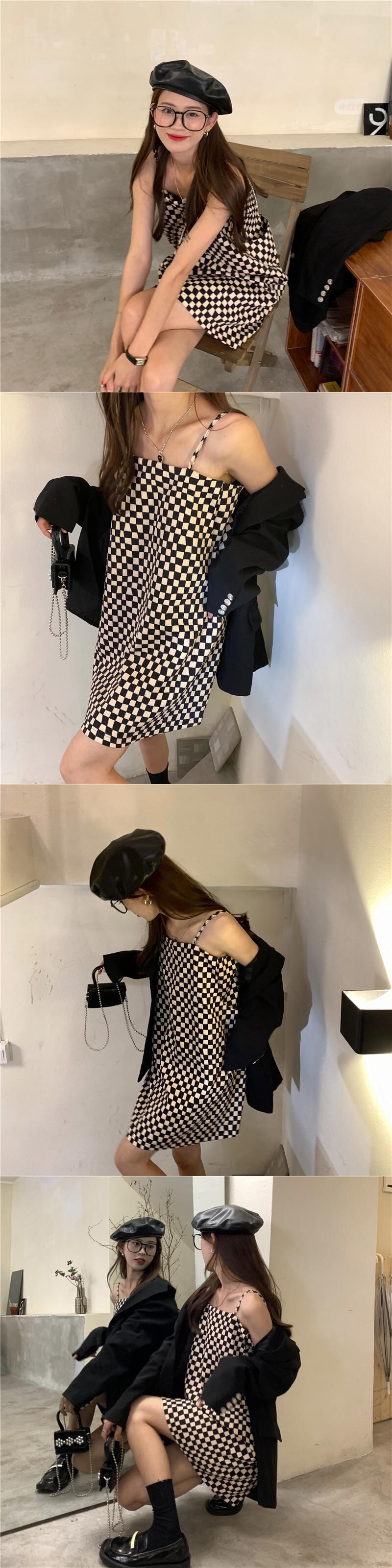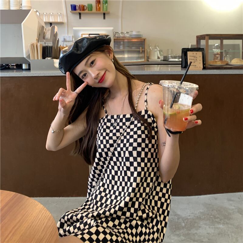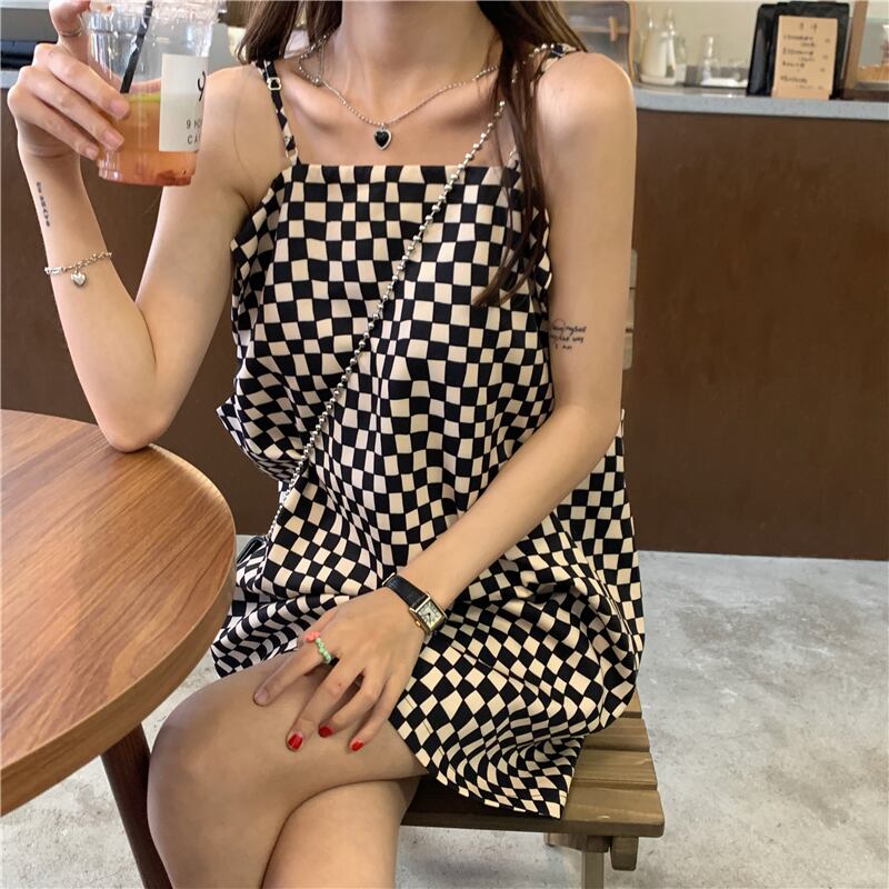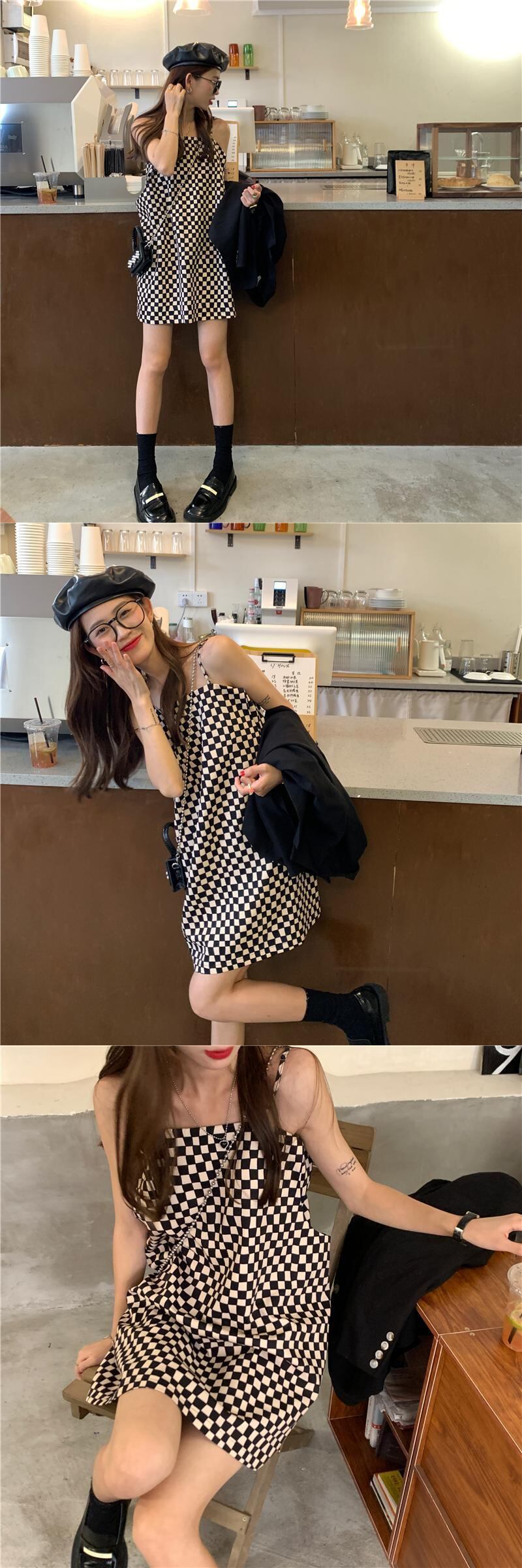 ノースリーブ薄手格子柄ドレス サマースタイルショート 大人ガーリー スウィート キュート カジュアル 夏物 モンロー39480659874