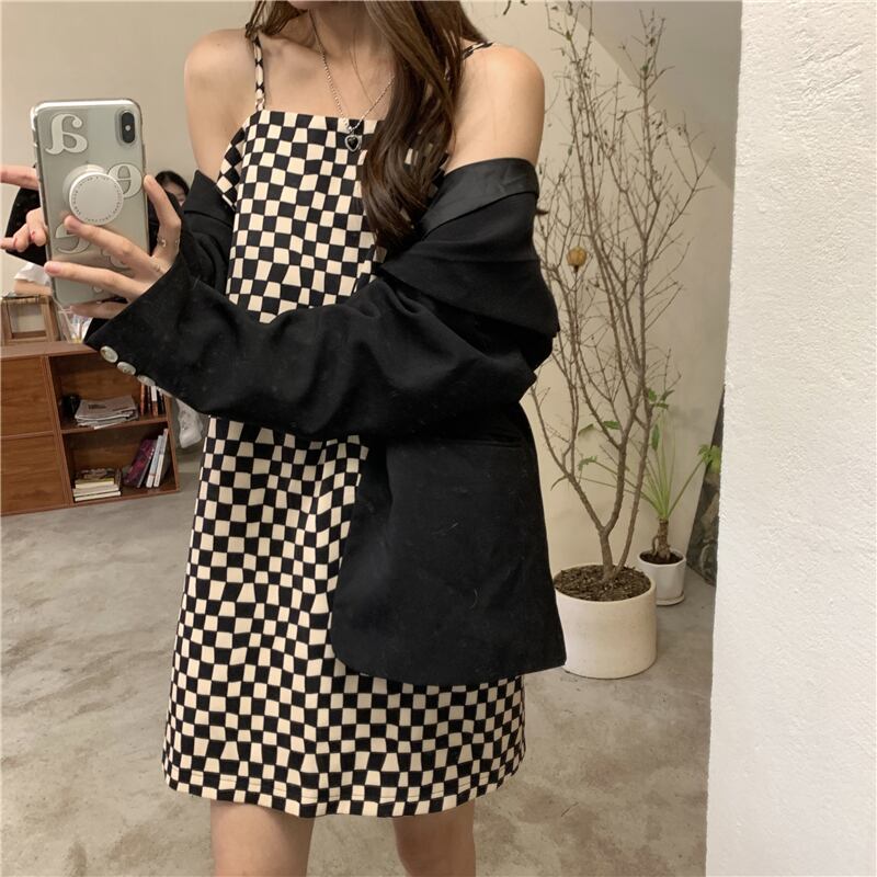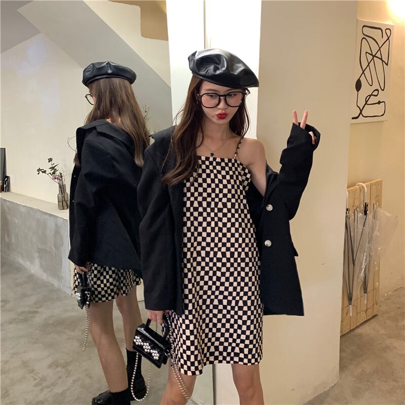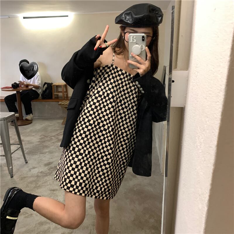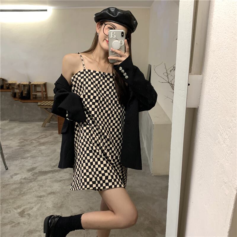 ノースリーブ薄手格子柄ドレス サマースタイルショート 大人ガーリー スウィート キュート カジュアル 夏物 モンロー39480659874