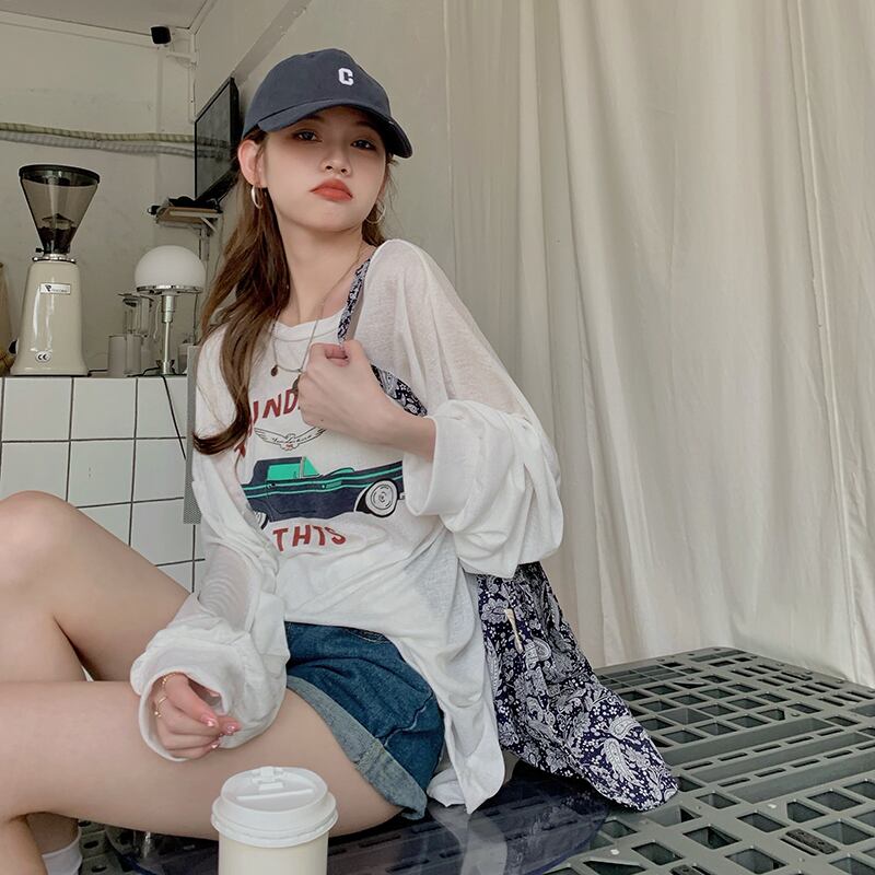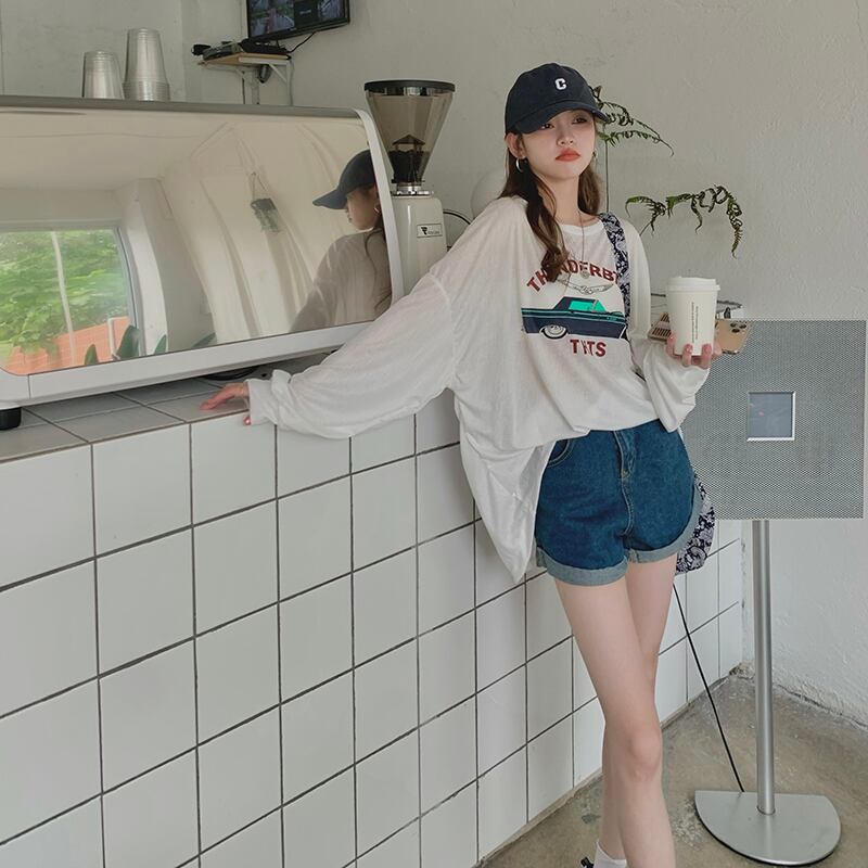 プリントホワイトルーズTシャツ シャツ 薄手サマートップス ロング 夏物 モンロー95835516463