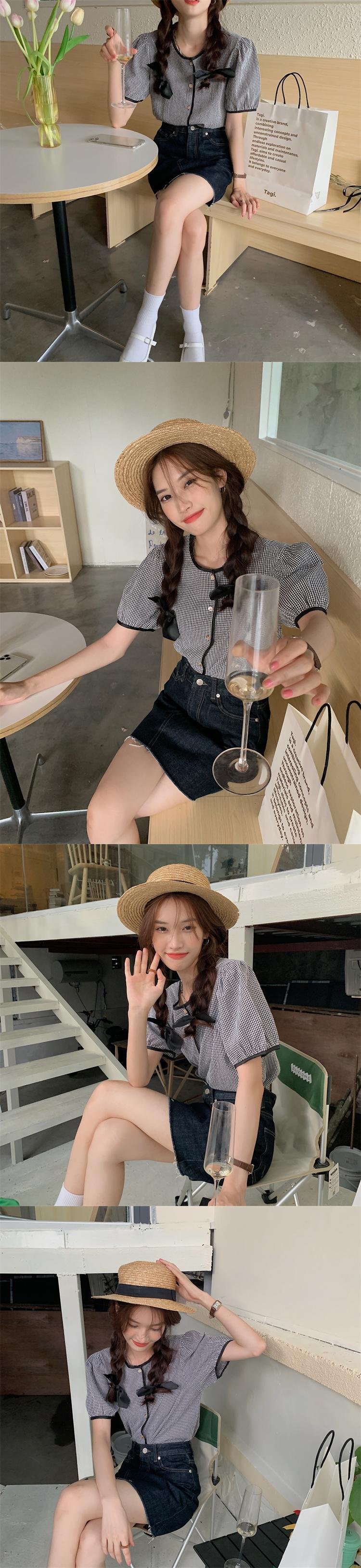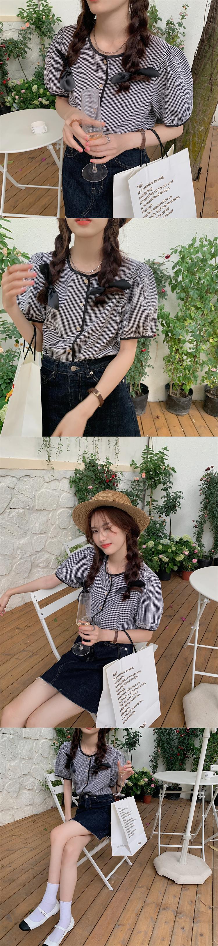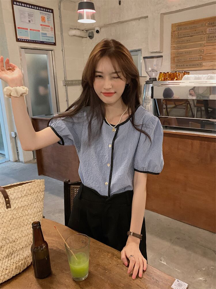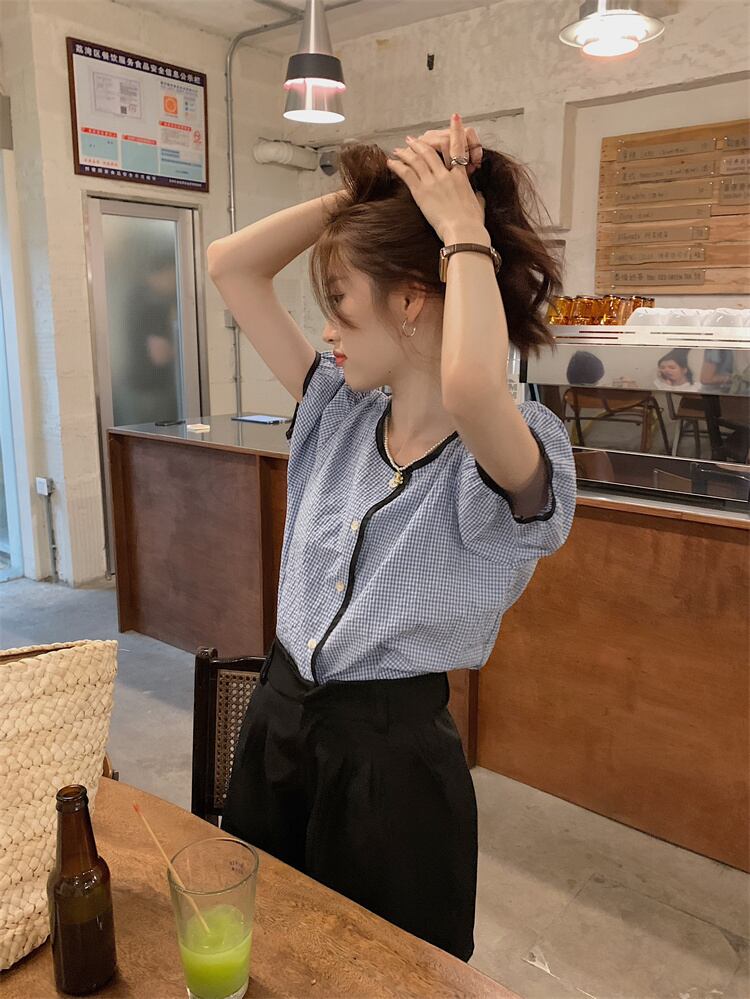 スリーブ格子柄シャツ サマートップス 大人ガーリー スウィート キュート カジュアル 夏物 モンロー838726928