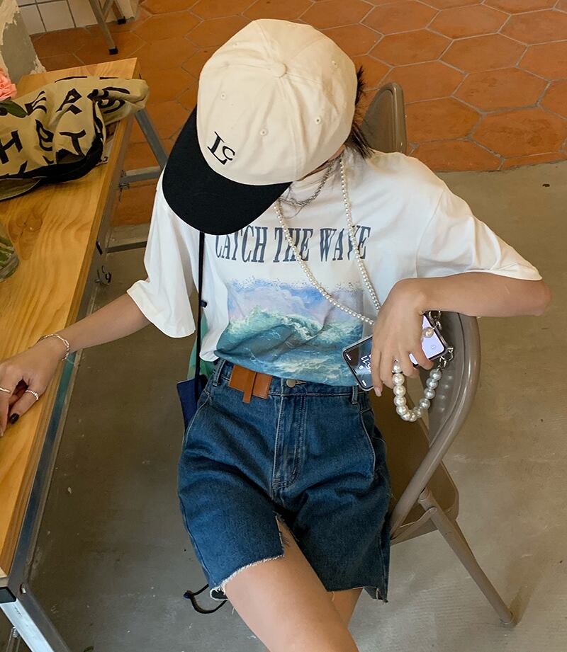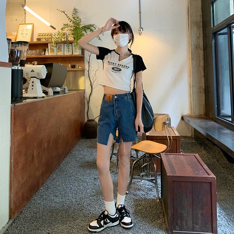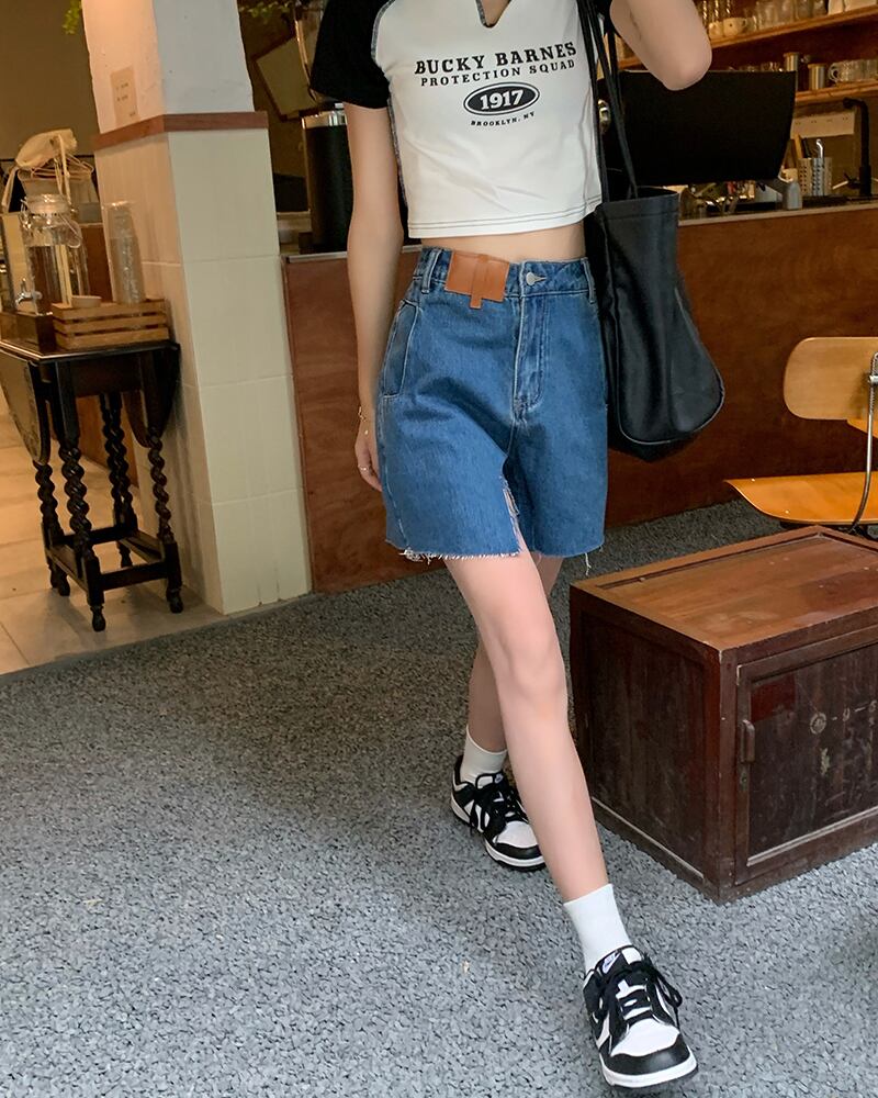 ウェストスリムルーズジーンズ サマースタンダードパンツ ショーツ レトロ 夏物 ブルマー モンロー77001484750