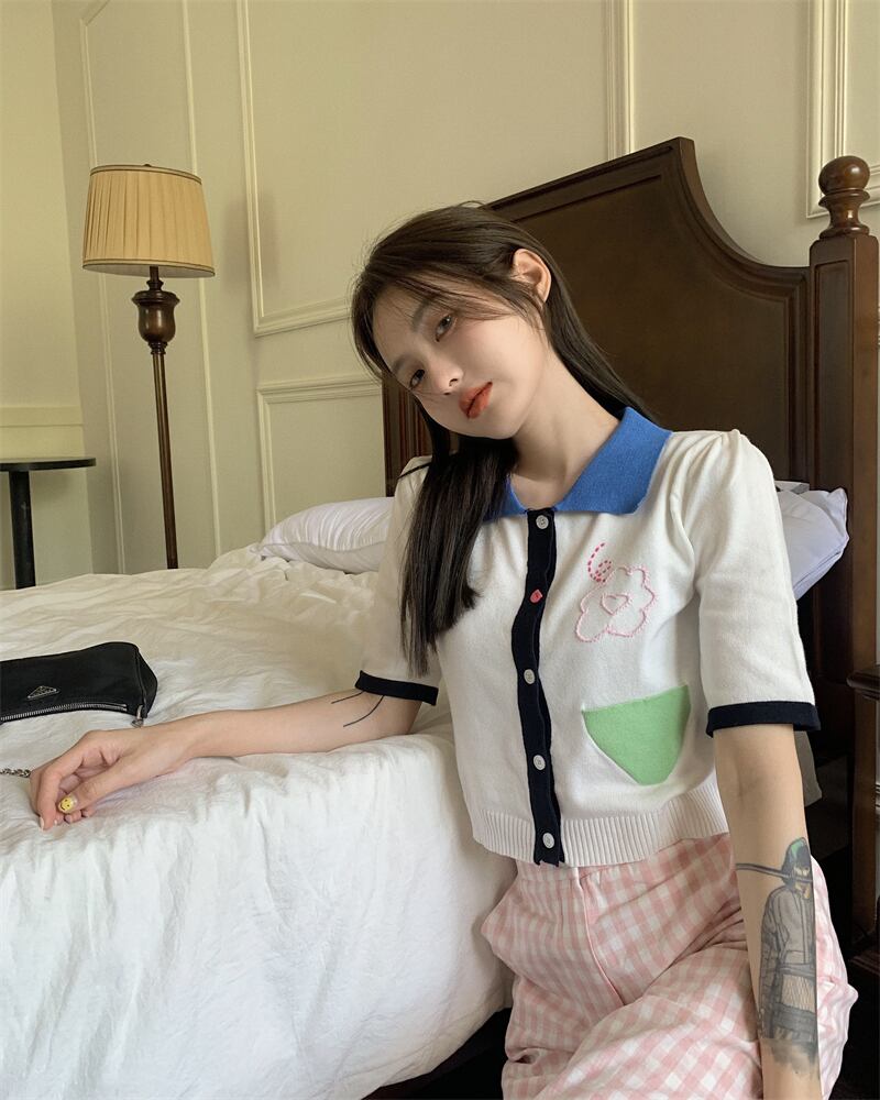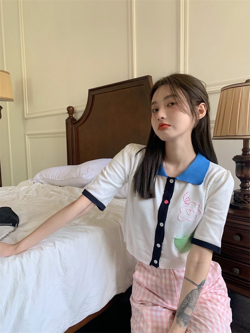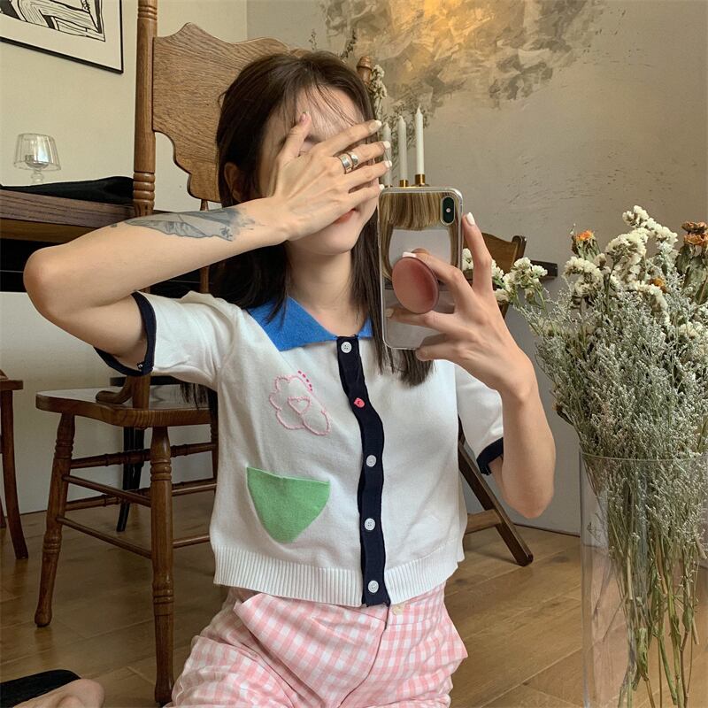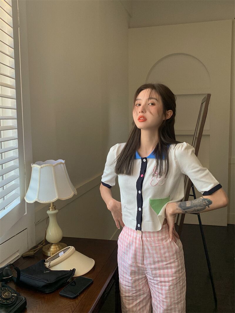 カラーニットカーディガン薄手ジャケット シャツ サマークロップドトップス 夏物 モンロー63562931530