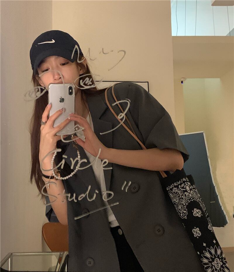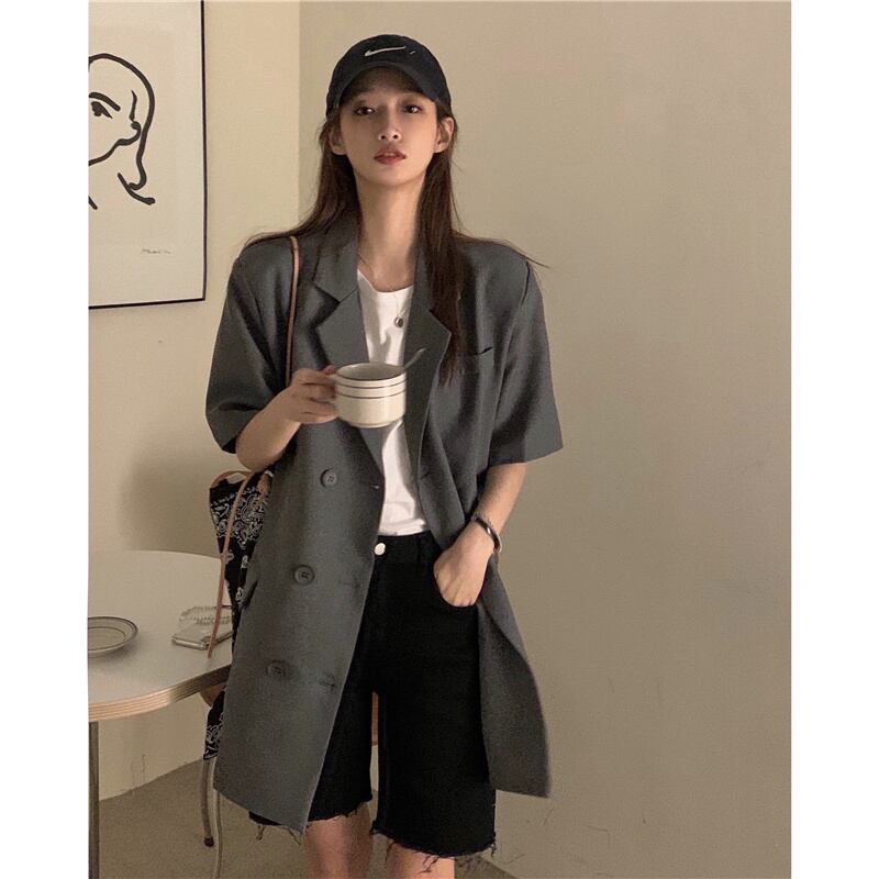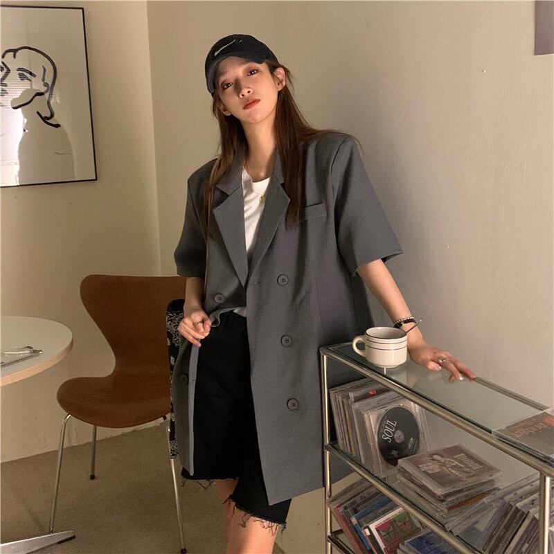 色:グレーの半袖スーツ