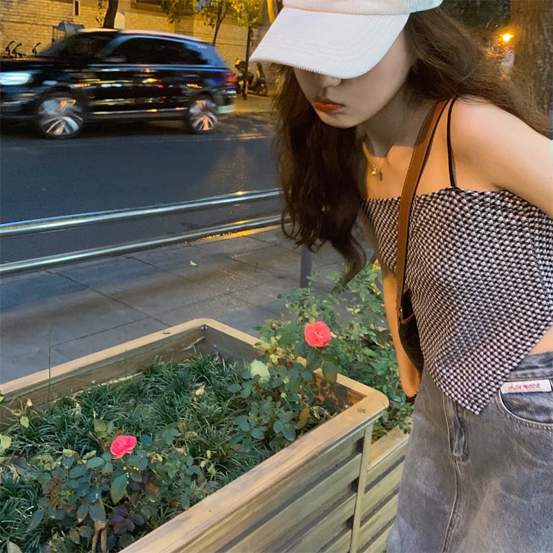 格子柄サマーショート薄手バックノースリーブトップス 大人ガーリー スウィート キュート カジュアル 夏物 モンロー93060834292