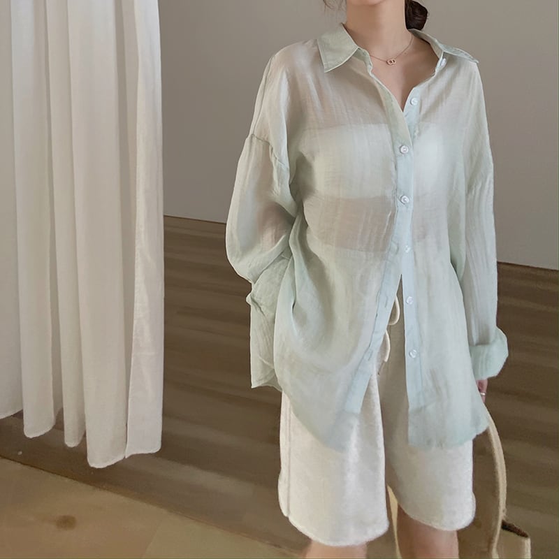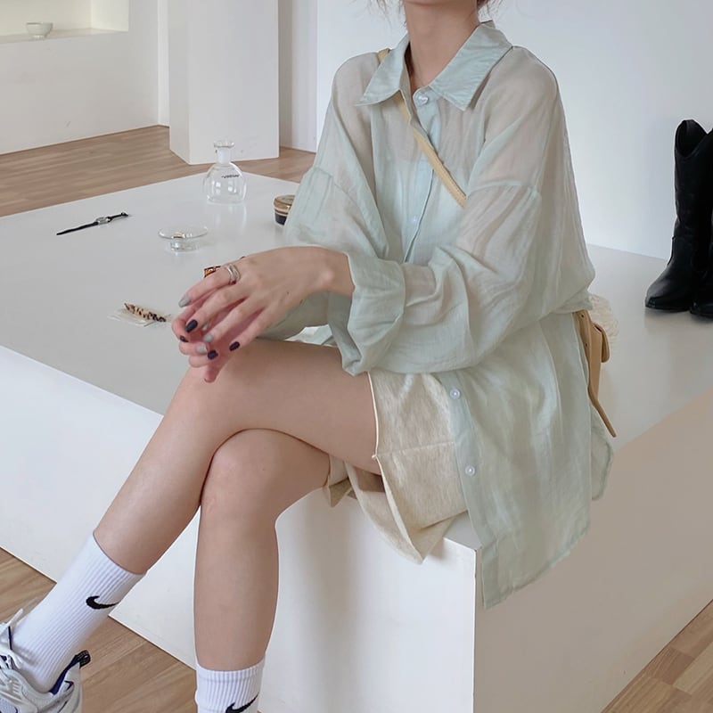 スタンダードシャツ 薄手ジャケット サマールーズトップス ロング レトロ 夏物 モンロー80908010856
