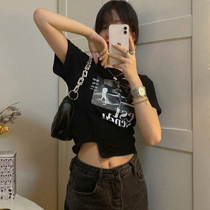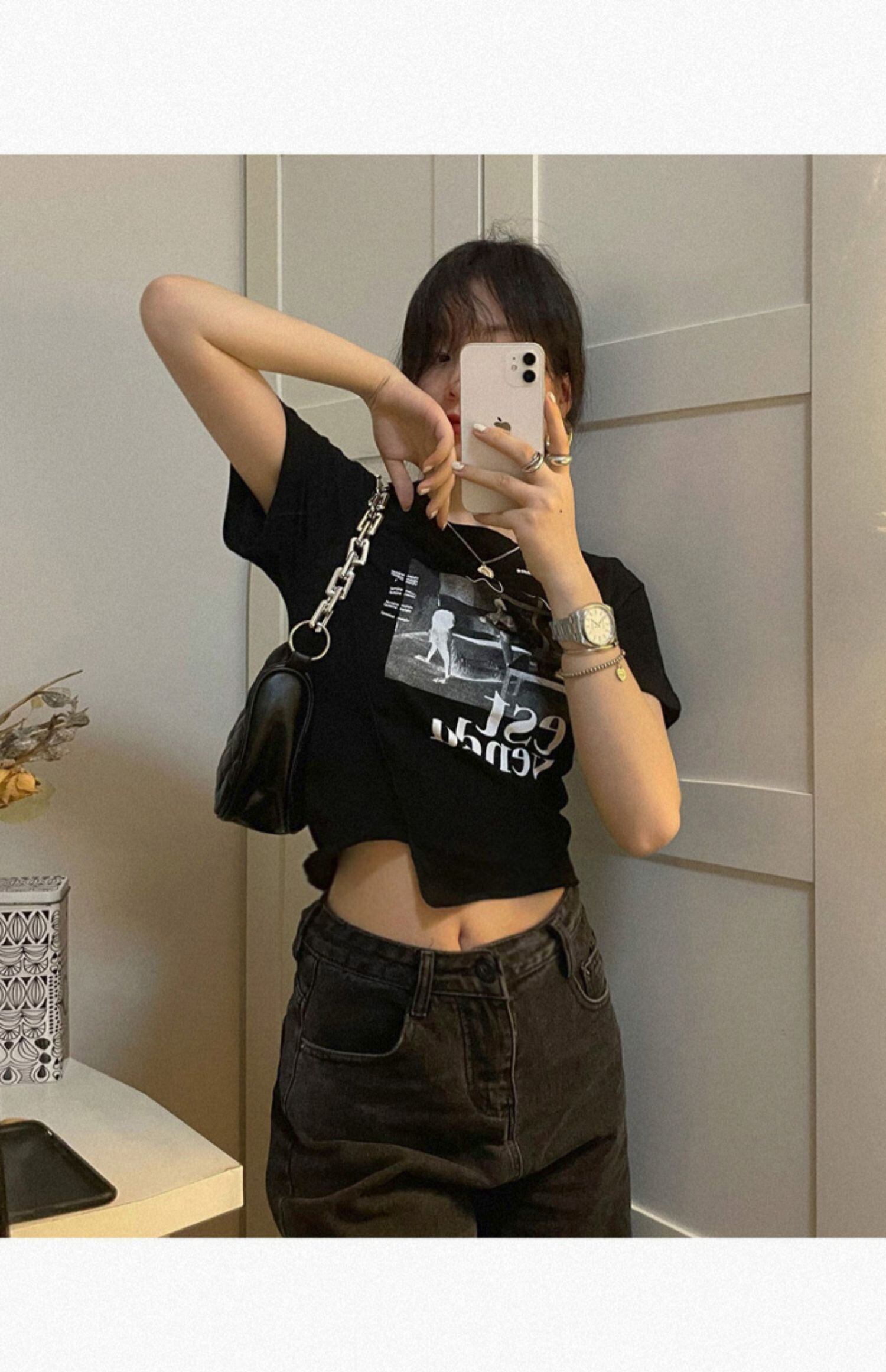 ホワイト薄手ショートサマーTシャツ 夏物 モンロー53010629934