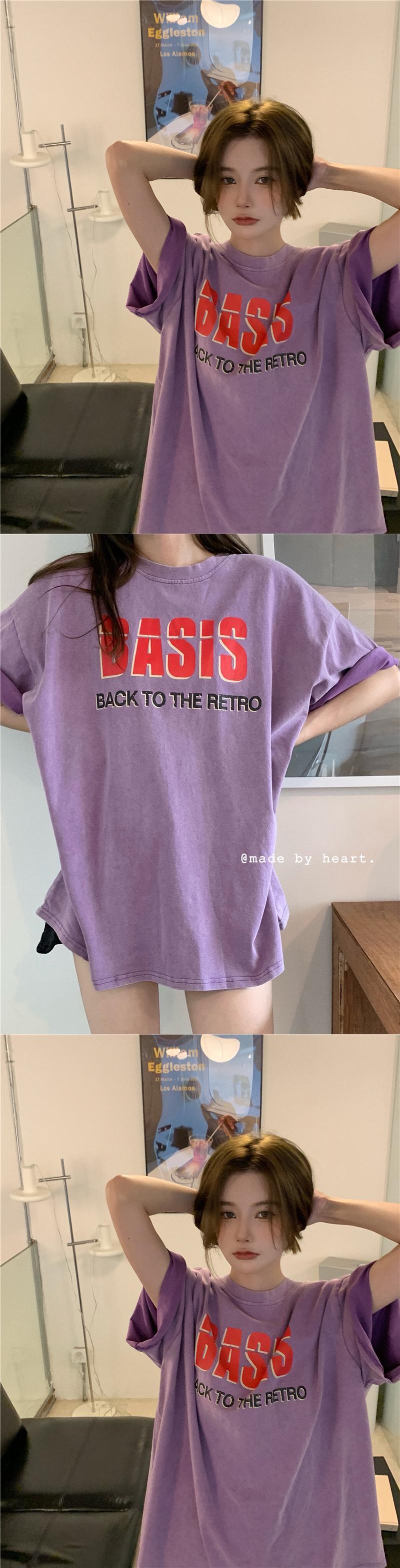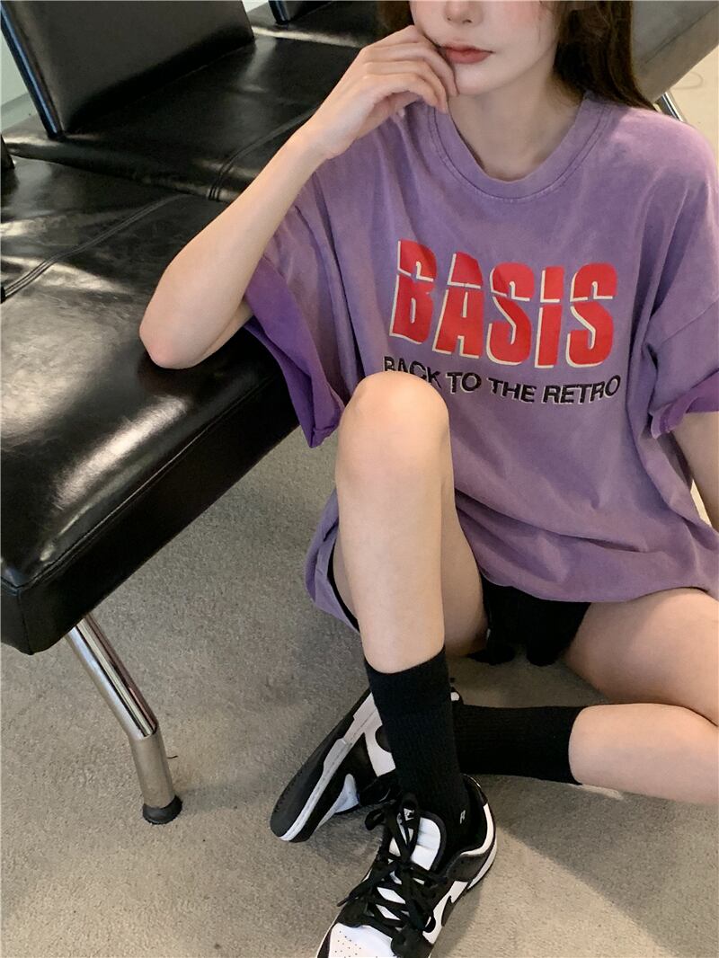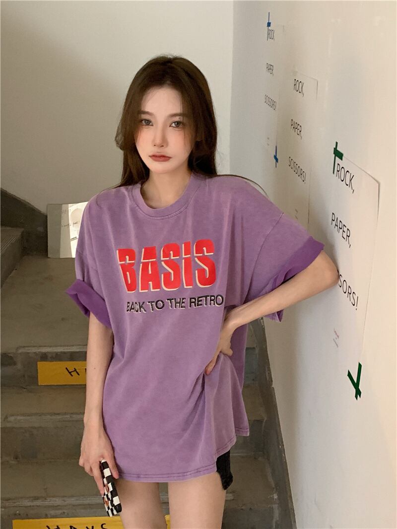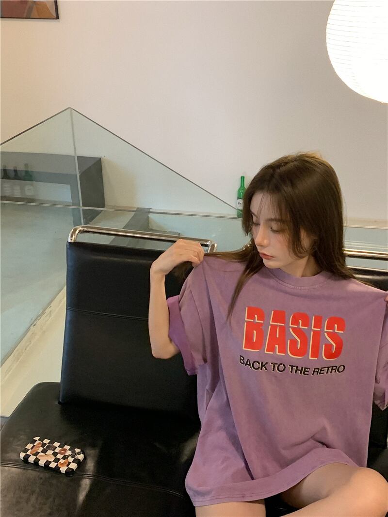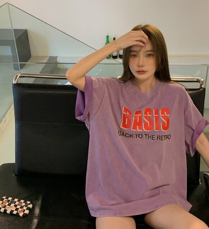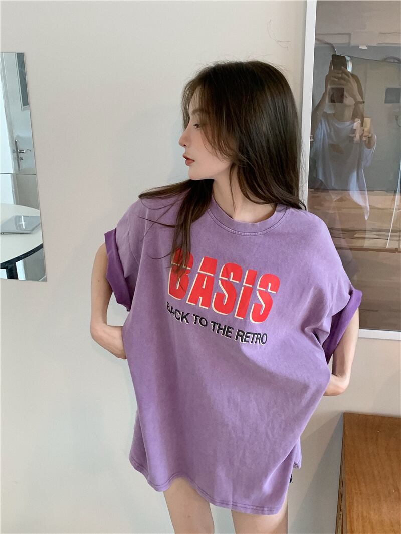 スタイルルーズTシャツ 薄手サマー 夏物 パープル モンロー95402828954