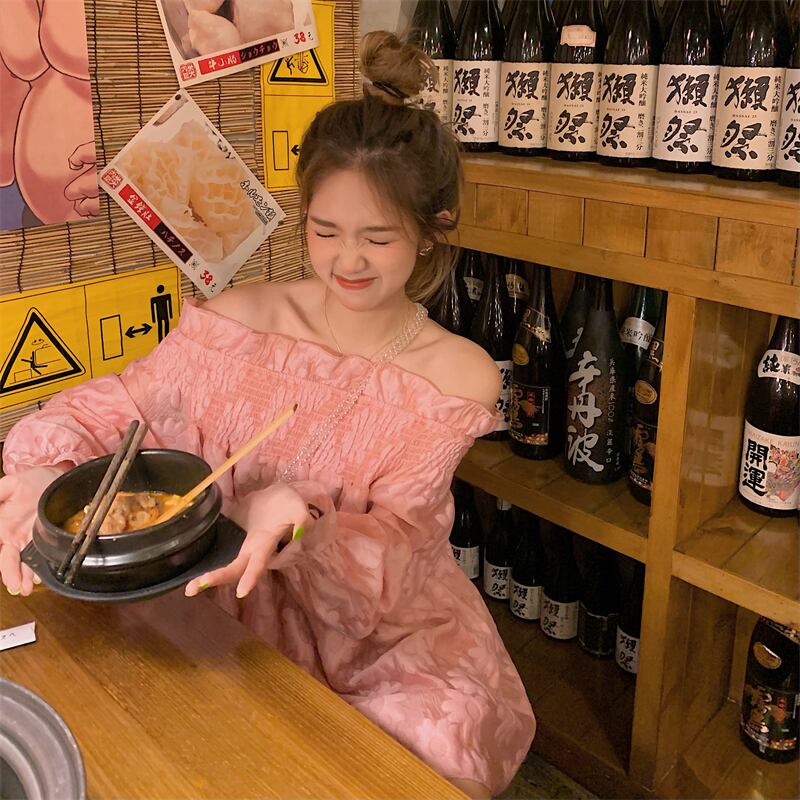 ルーズドレス サマースタイルストラップレススカート ピンク 夏物 モンロー3718751133