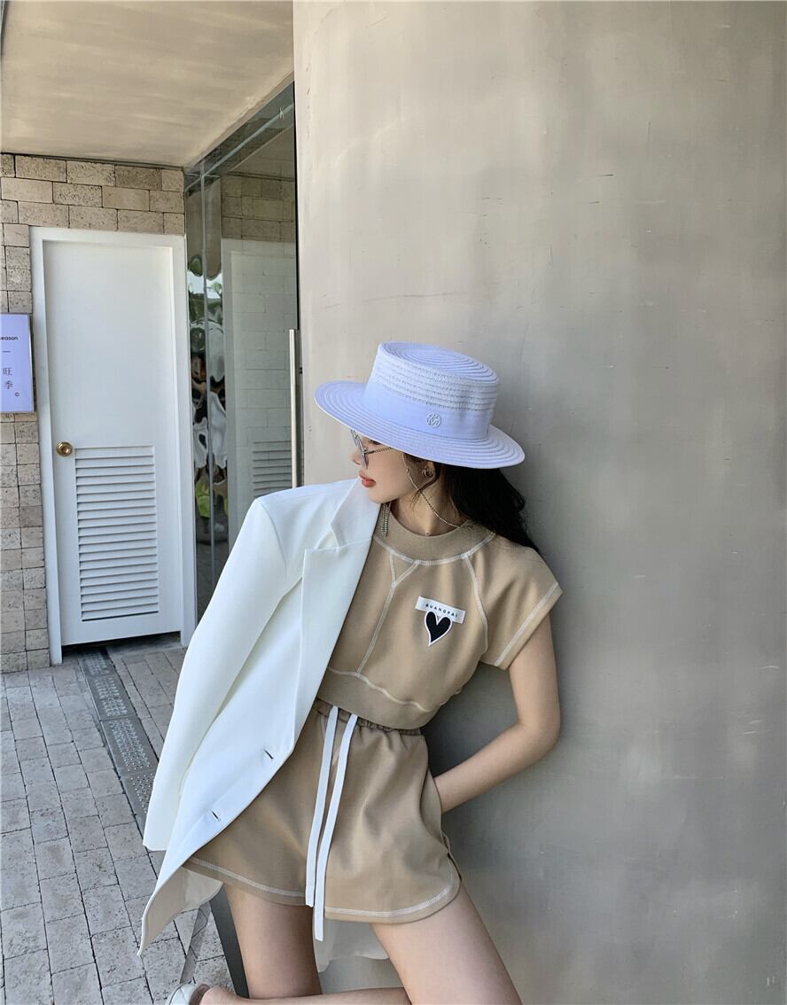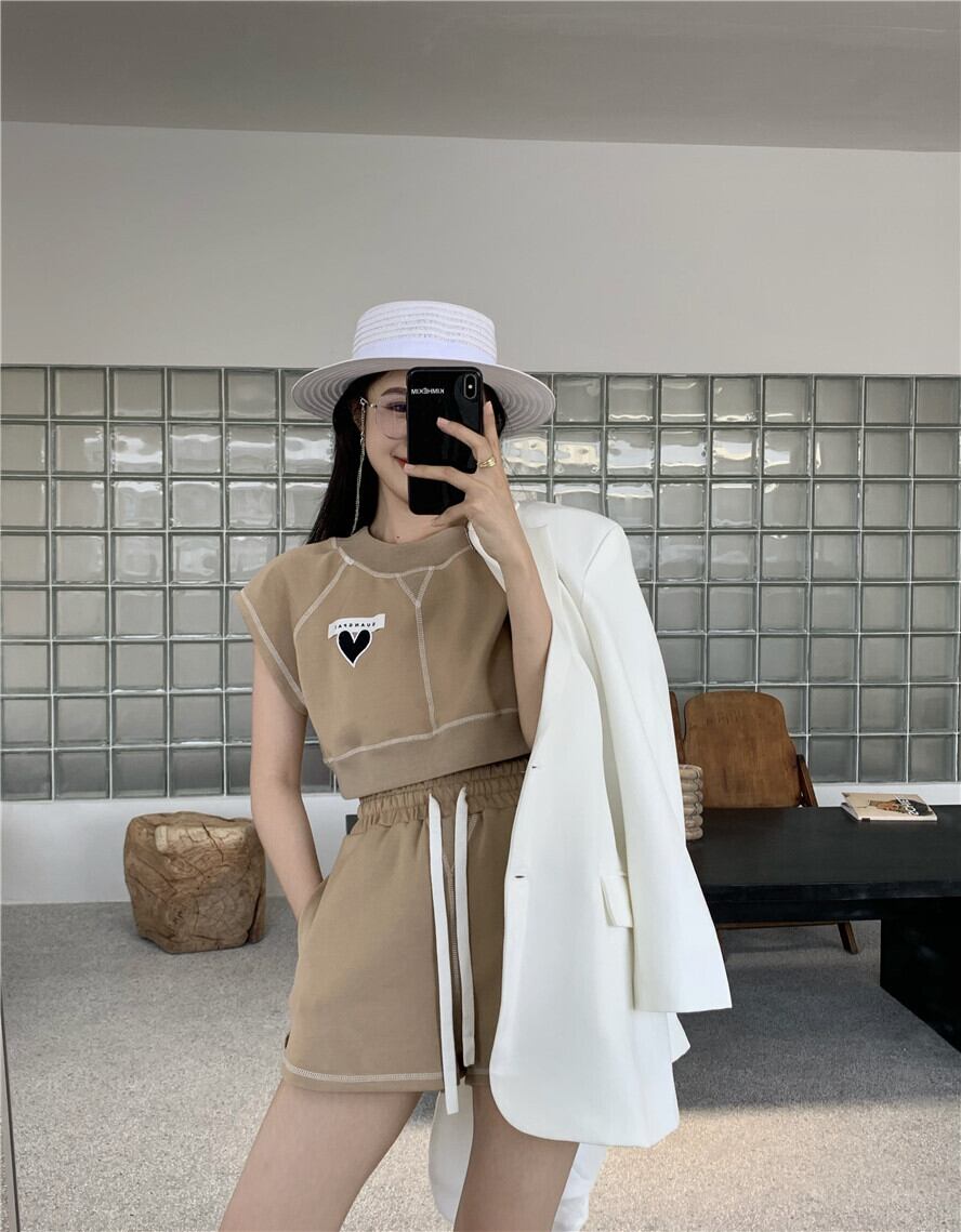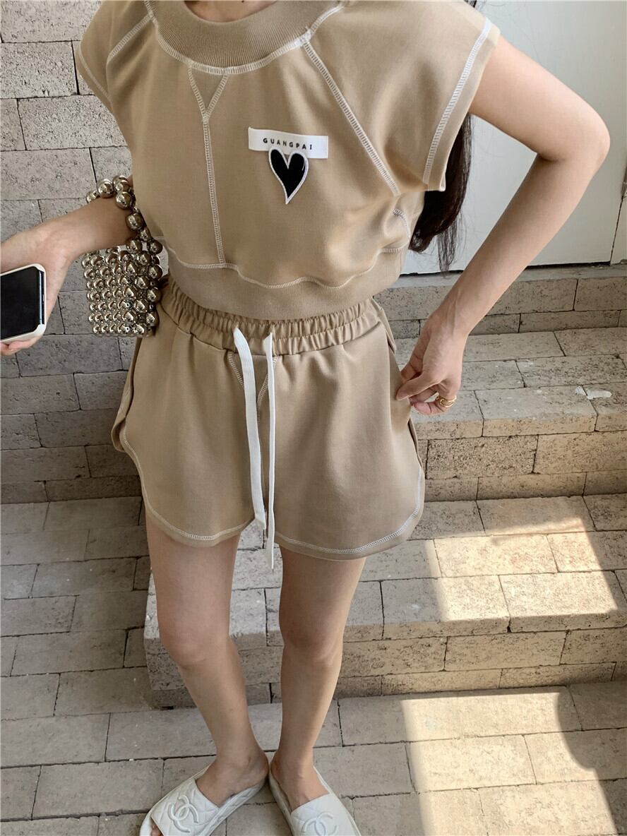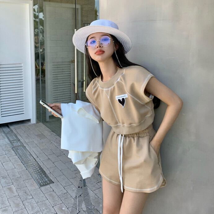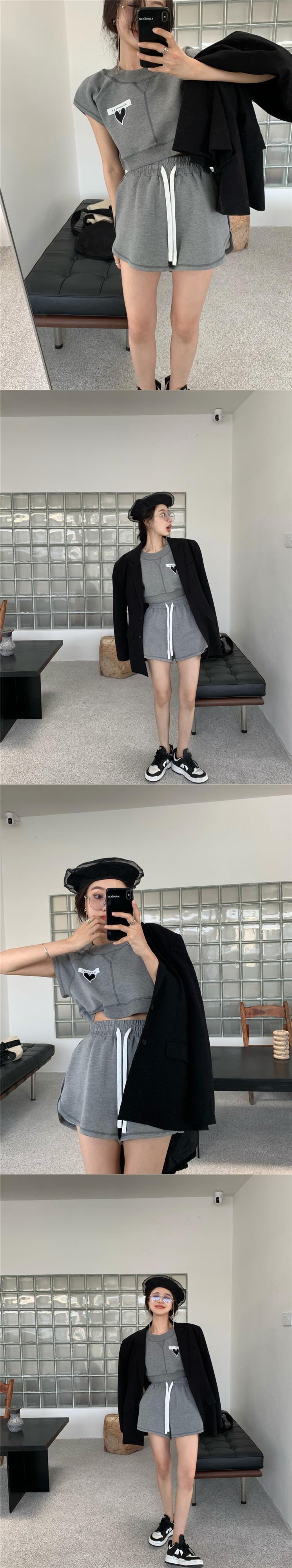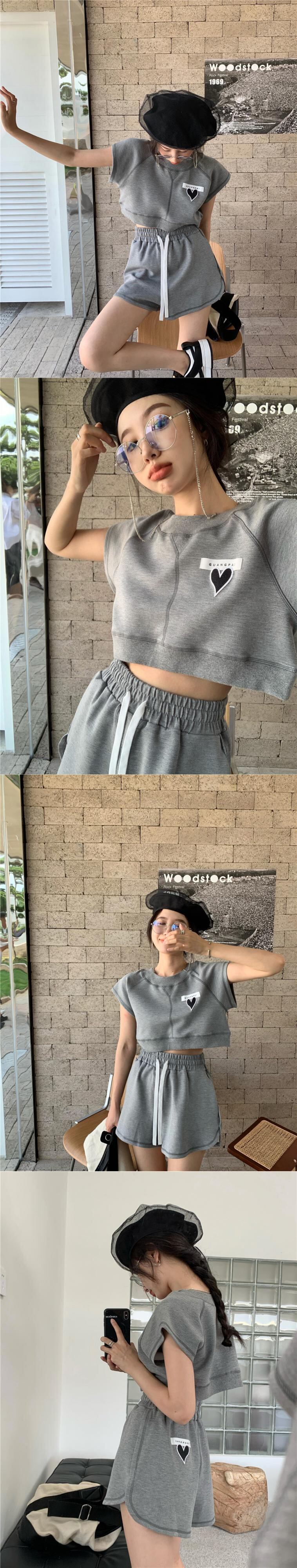 色:ブラウントップ,ブラウンショートパンツ,グレートップ,グレーのショートパンツ