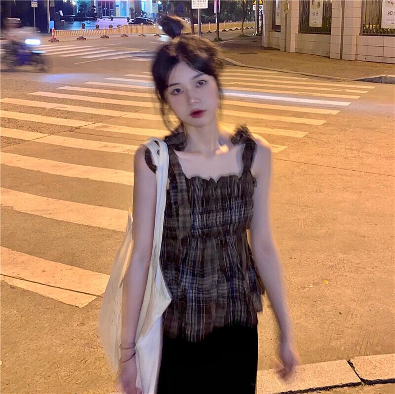 格子柄薄手ショートノースリーブサマー 半袖 ハーフスリーブ 大人ガーリー スウィート キュート カジュアル 夏物 モンロー63275932769
