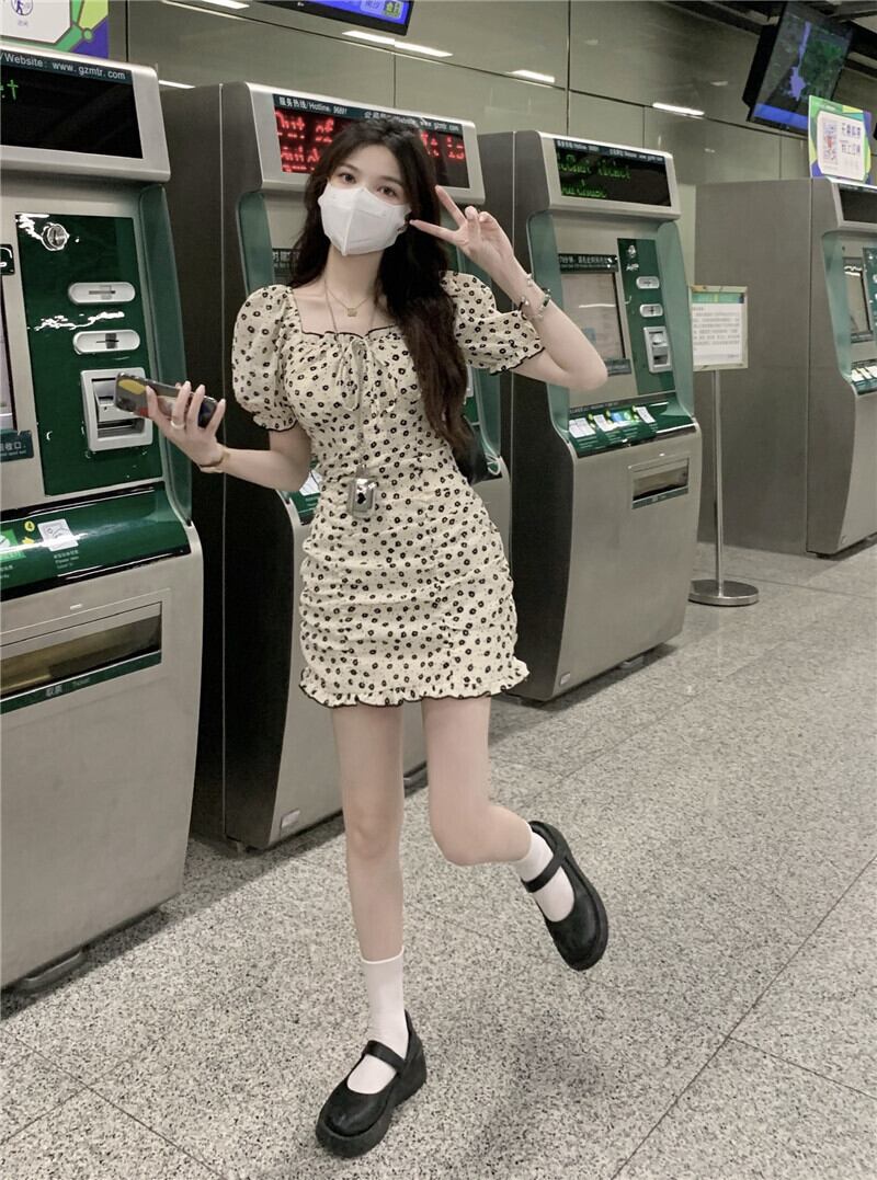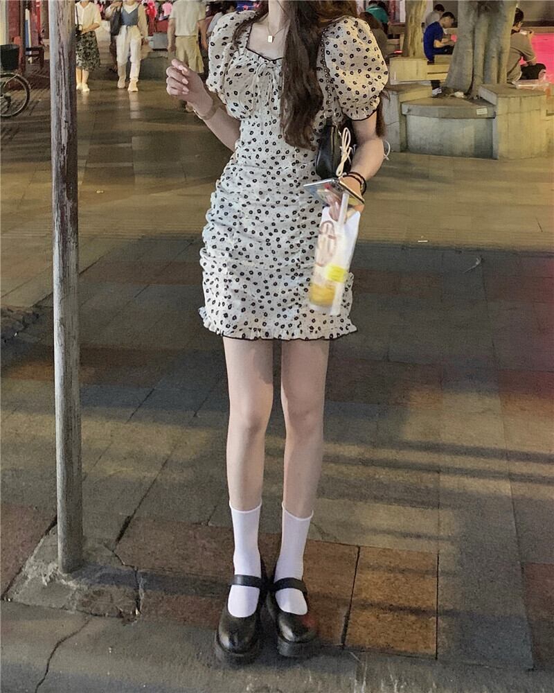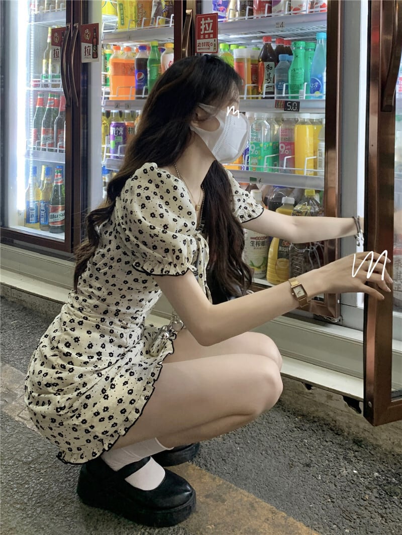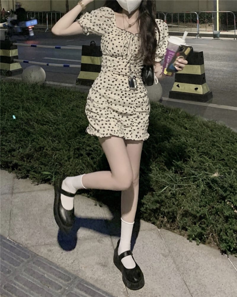 スリーブフローラルドレス サマースタイルショートスカート 大人ガーリー スウィート キュート カジュアル 夏物 花柄 スクウェア モンロー15485876654