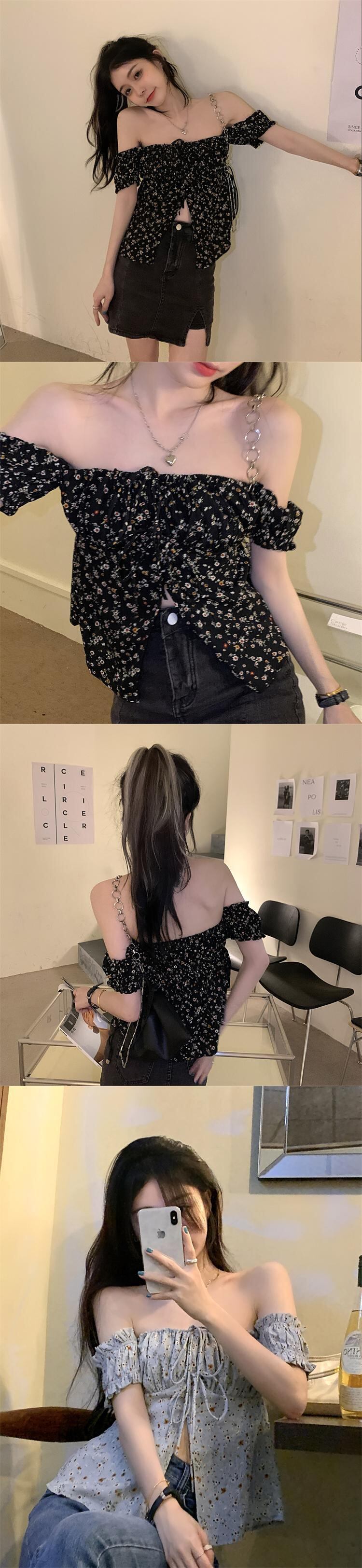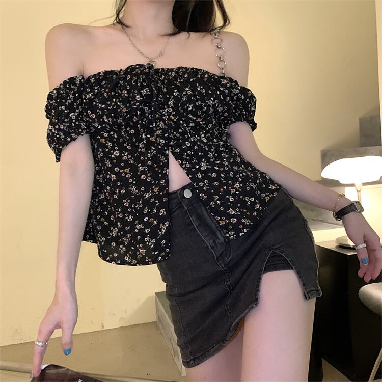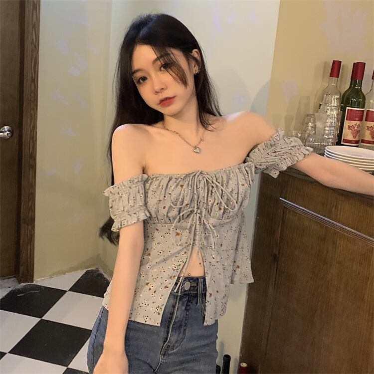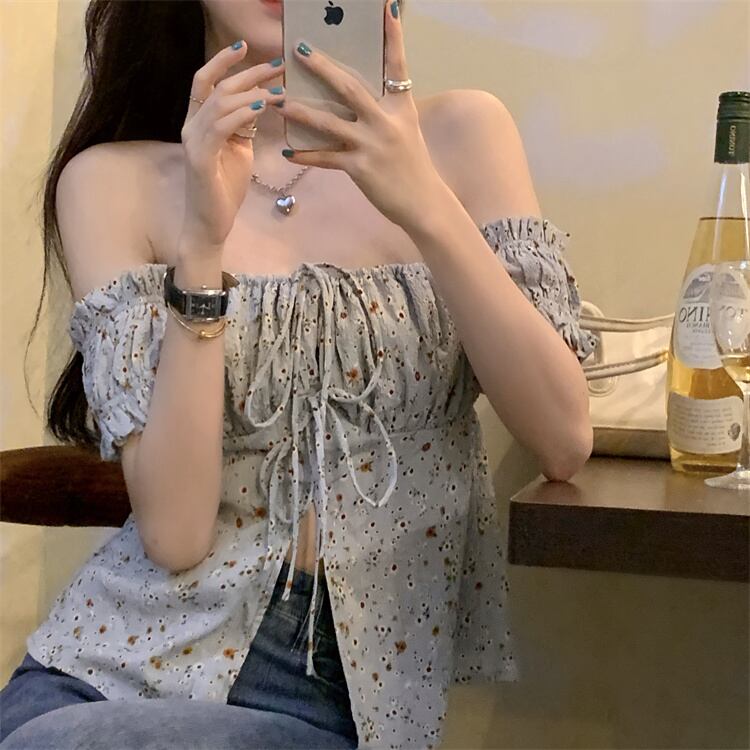 フローラルシャツ サマートップス レース 大人ガーリー スウィート キュート カジュアル 夏物 花柄 レースアップ モンロー30409901504