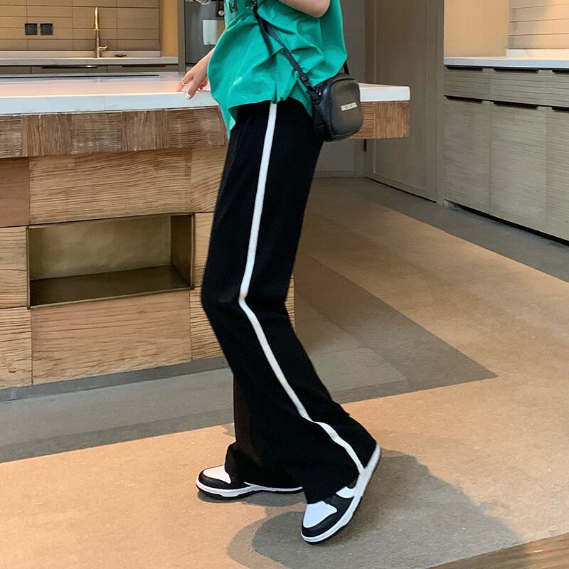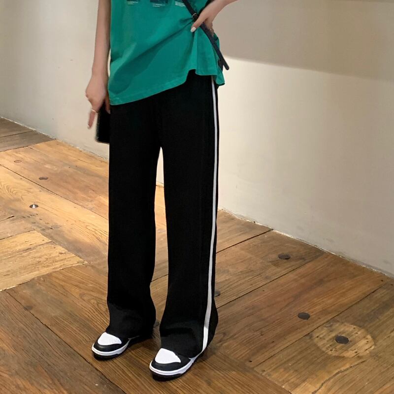 ブラックハイウェストカジュアルパンツ サマー薄手ルーズロング 夏物 モンロー42320811518