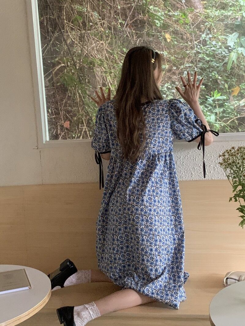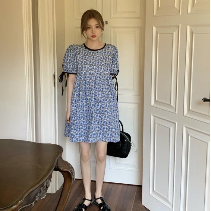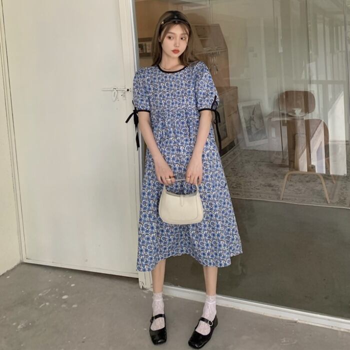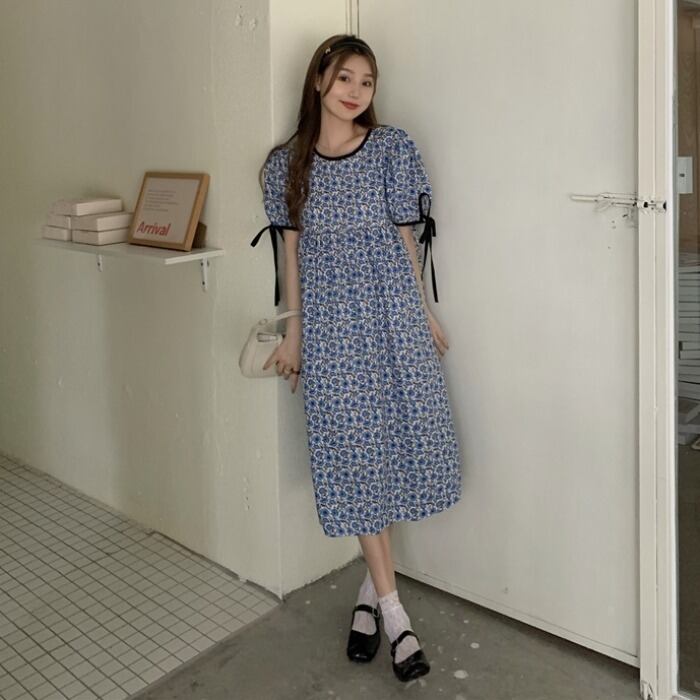 スリーブフローラルドレス サマーAラインスカート 大人ガーリー スウィート キュート カジュアル 夏物 花柄 モンロー68826539394