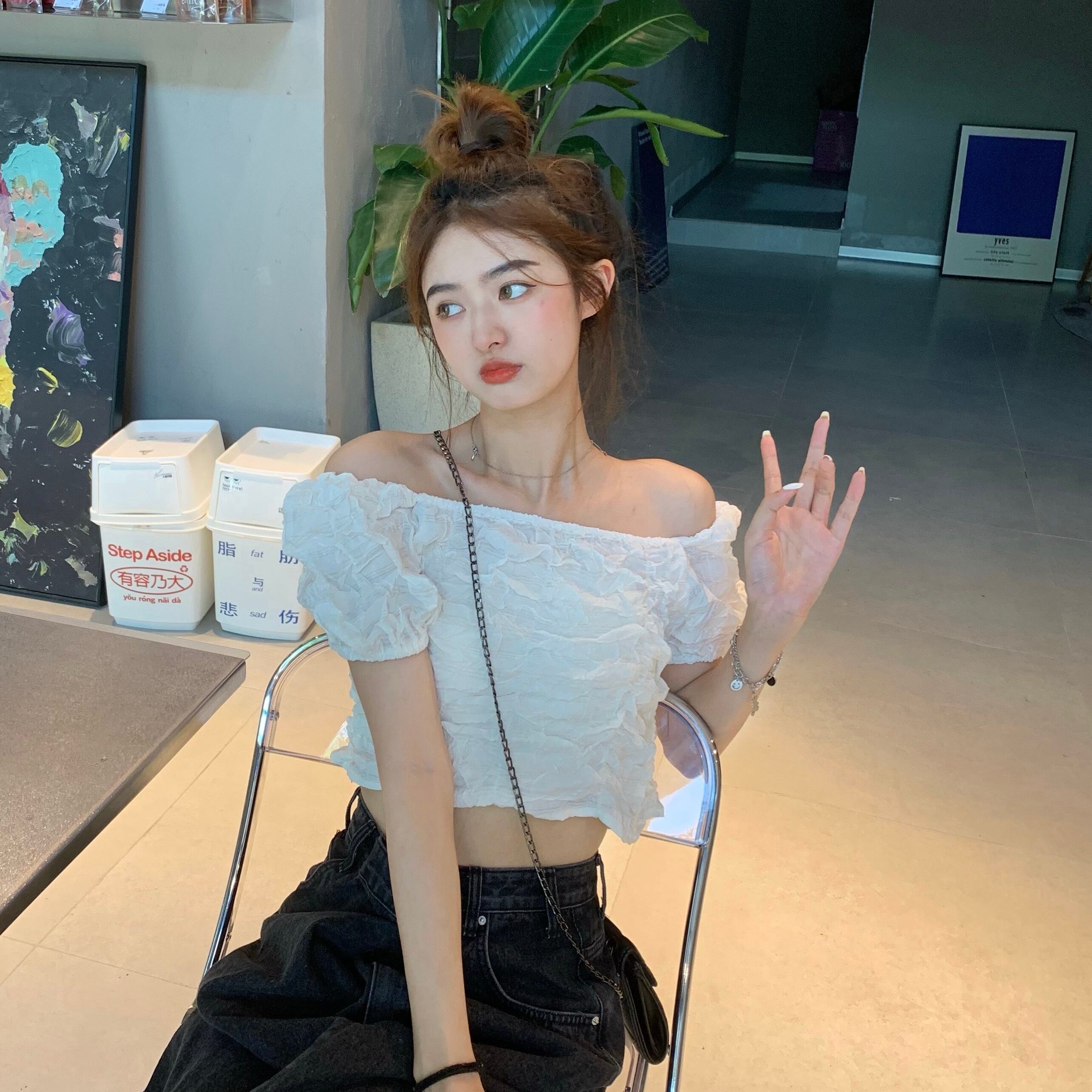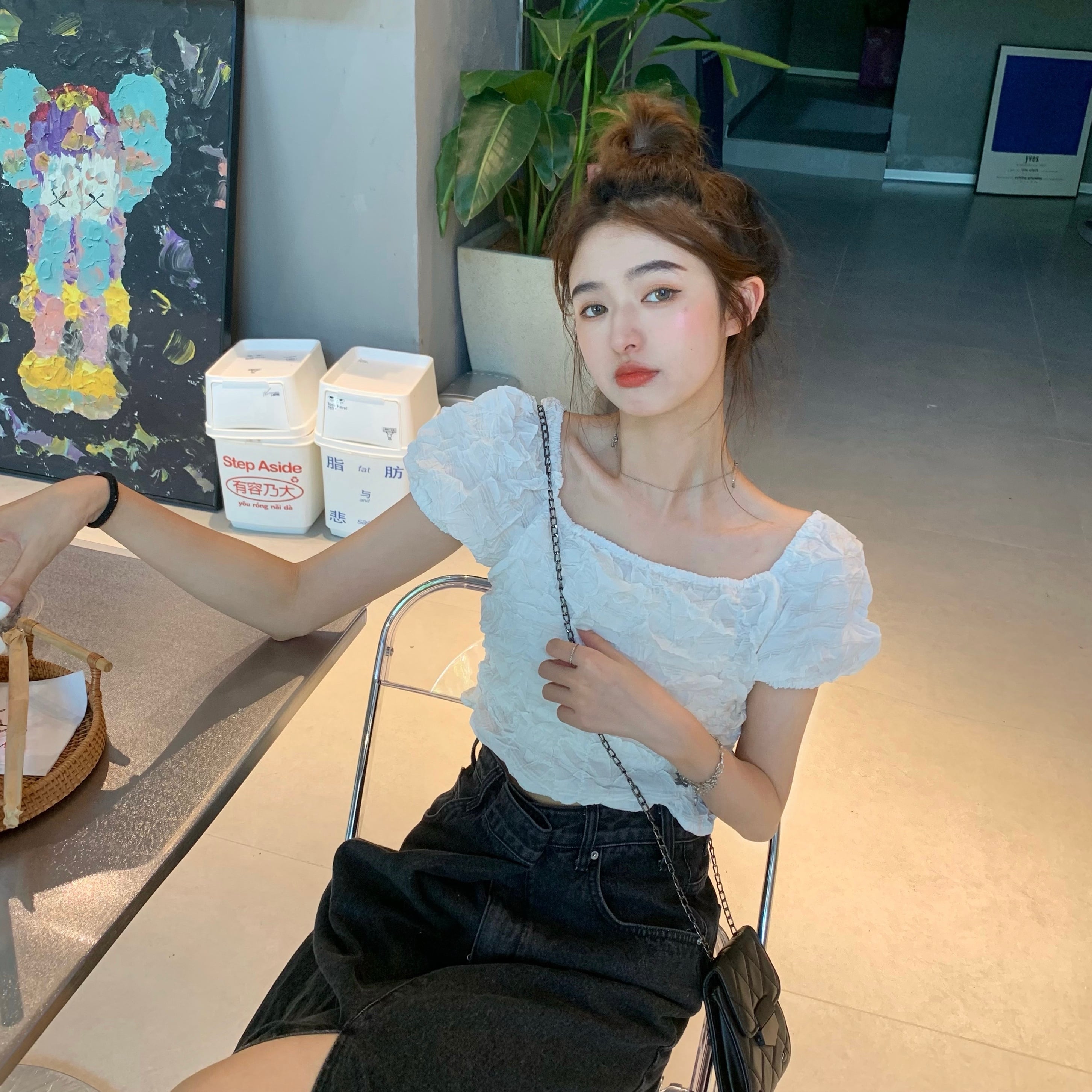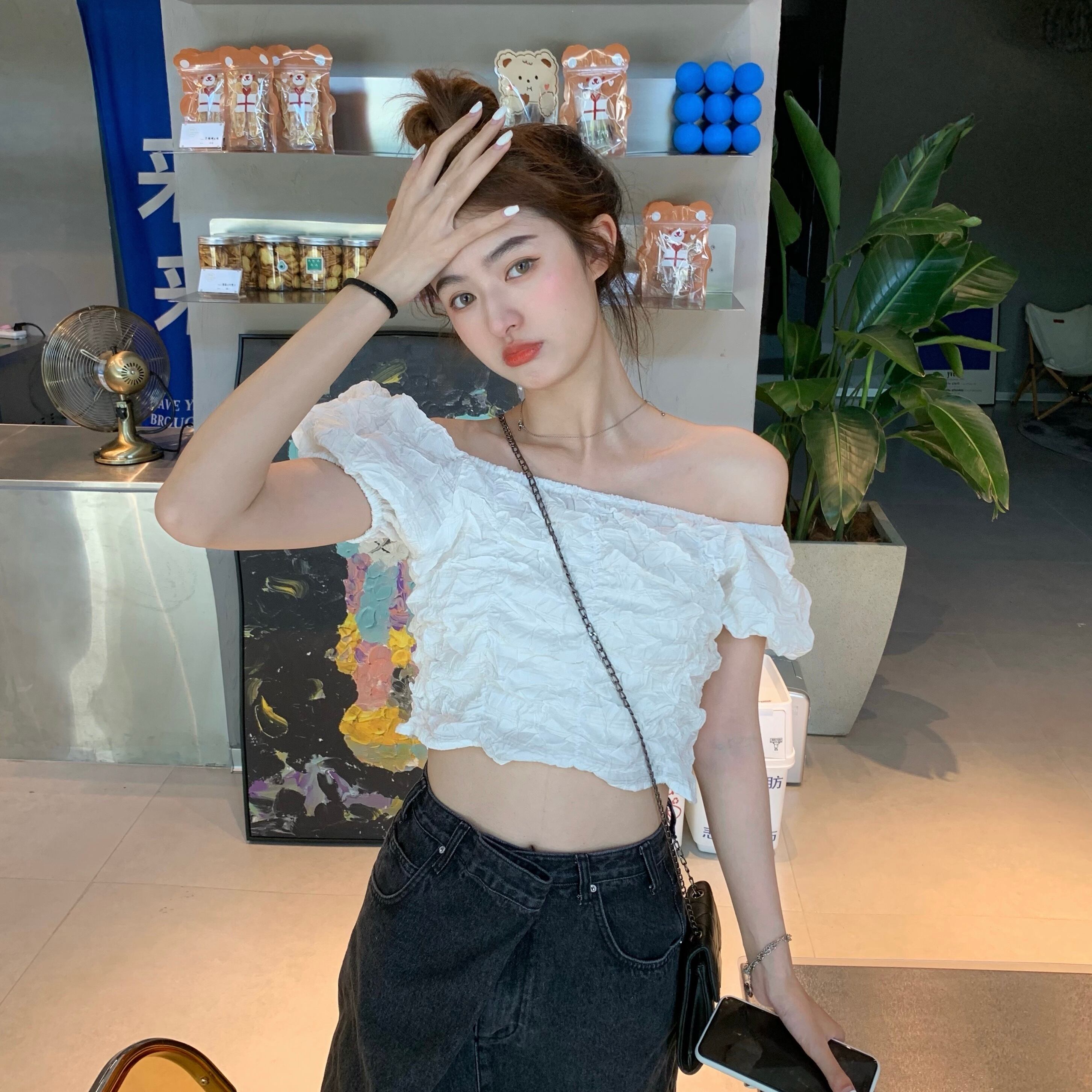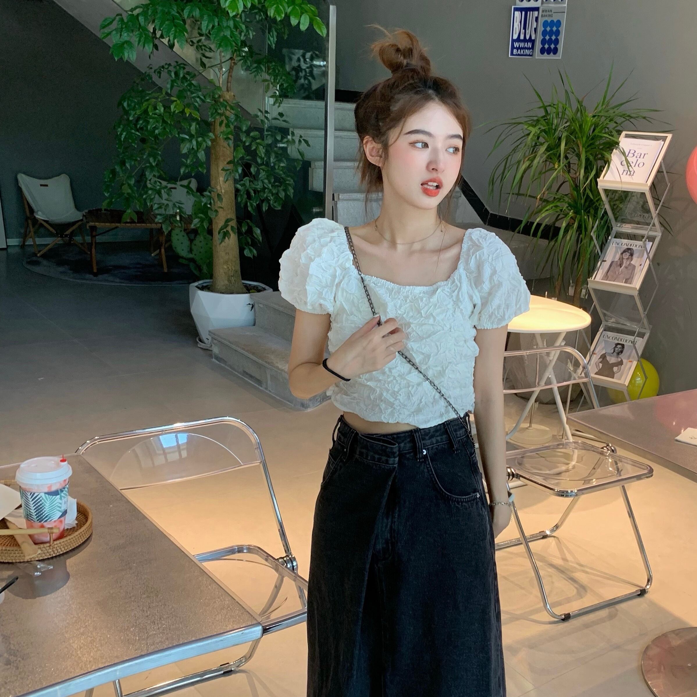 ショートプリーツシャツ 薄手ホワイトサマートップス 大人ガーリー スウィート キュート カジュアル 夏物 モンロー92099687477