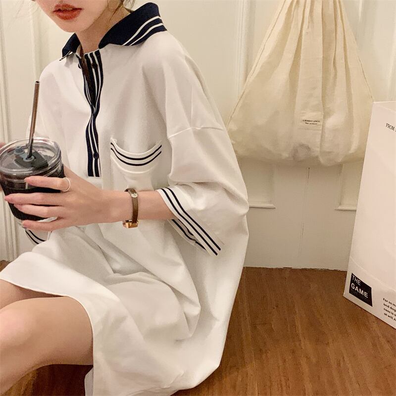 スタイルカラーTシャツ ブラックルーズドレス サマースカート 夏物 モンロー55900178114