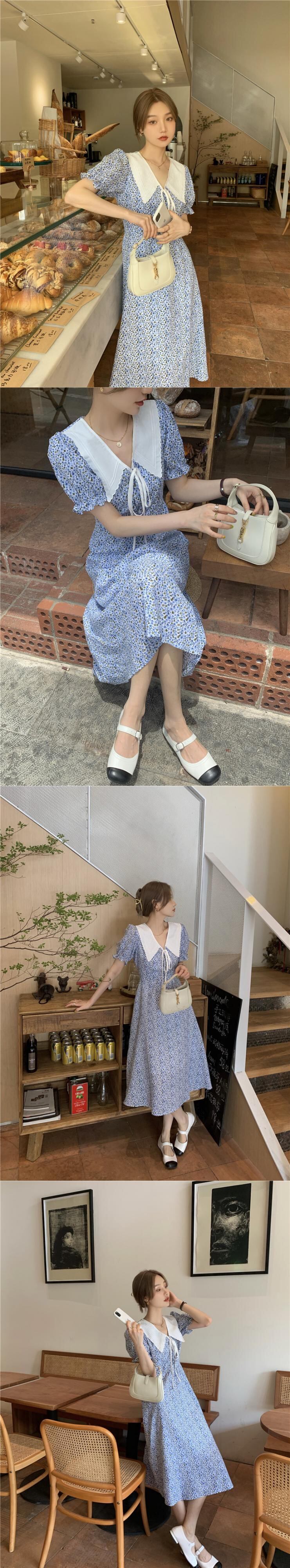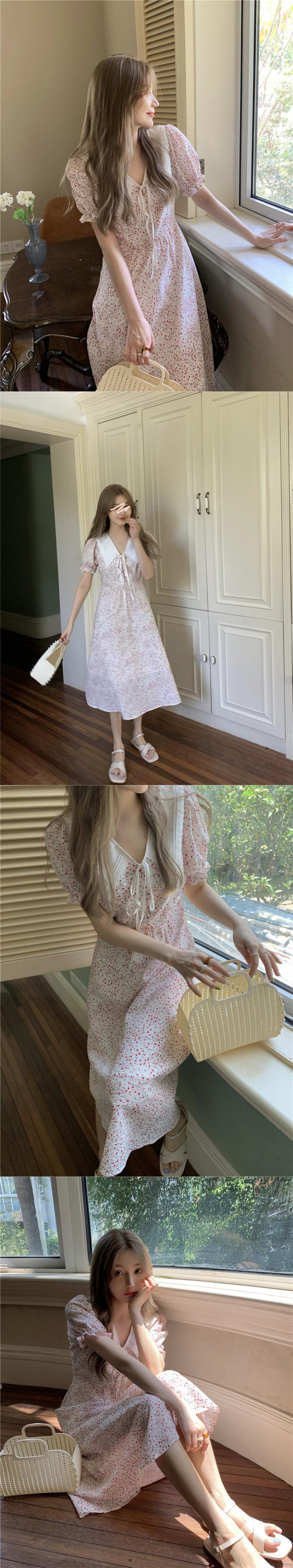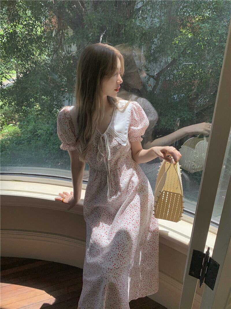 スタイルフローラルロングスカート サマーレースVネックウェストドレス 夏物 花柄 モンロー40921452661