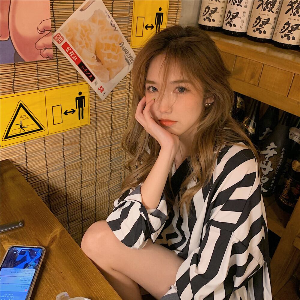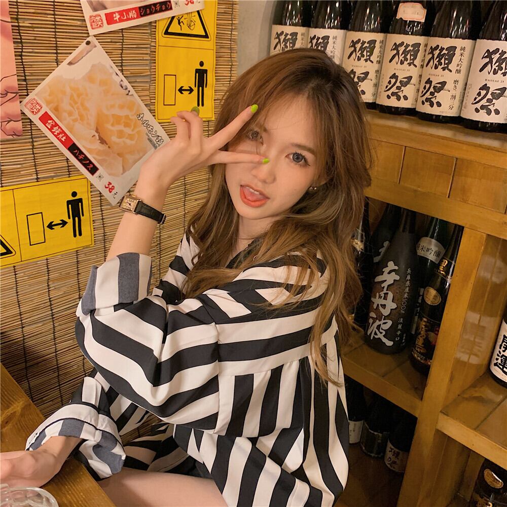 ストライプルーズシャツ 薄手ジャケット サマートップス ロング 夏物 モンロー64991218163