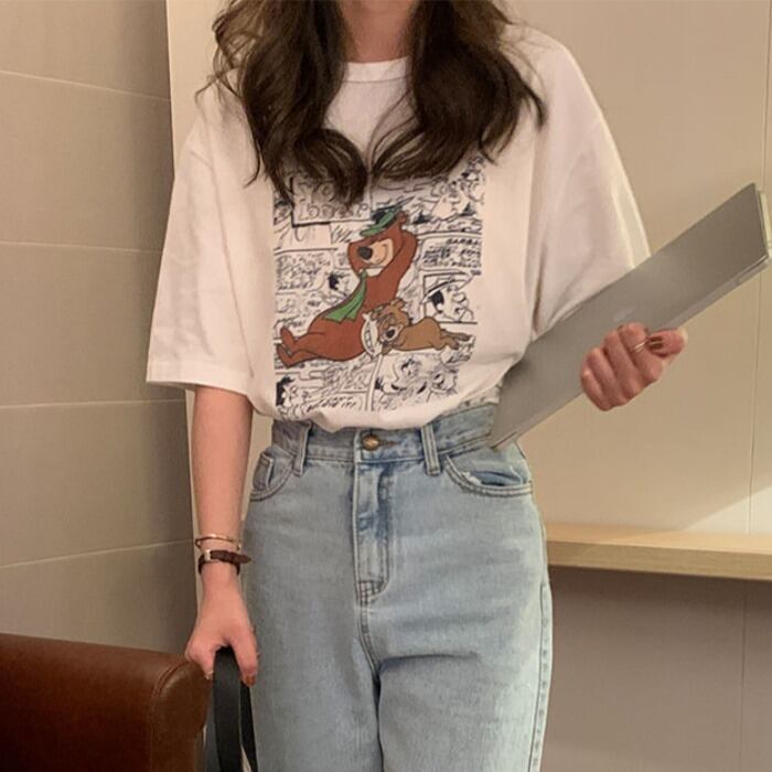 ルーズホワイトTシャツ サマーグレートップス コットン 夏物 モンロー95984064075