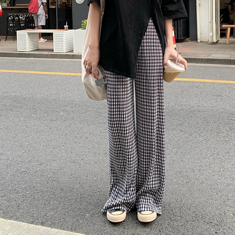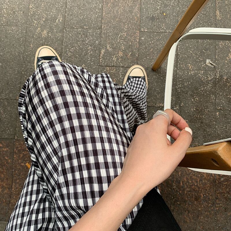 ウェストカジュアル格子柄パンツ サマー薄手ルーズ 夏物 モンロー32637782698